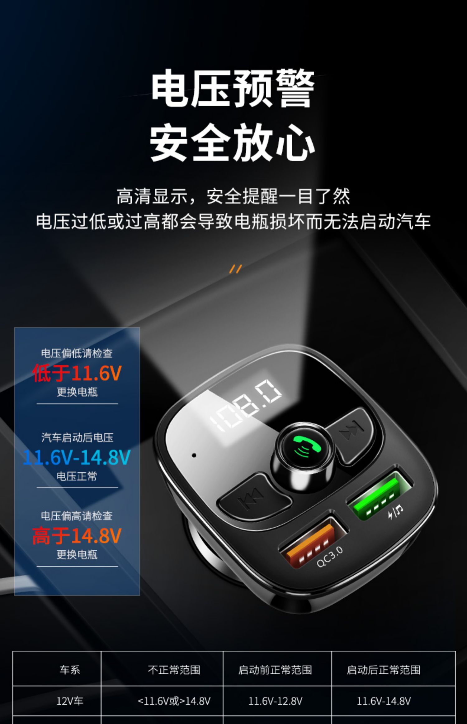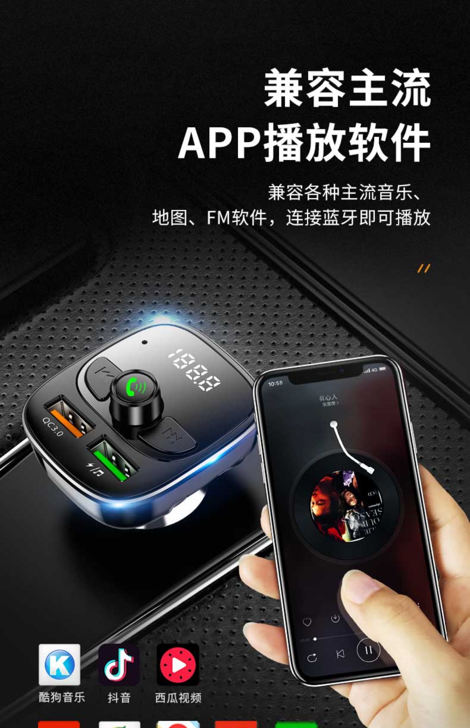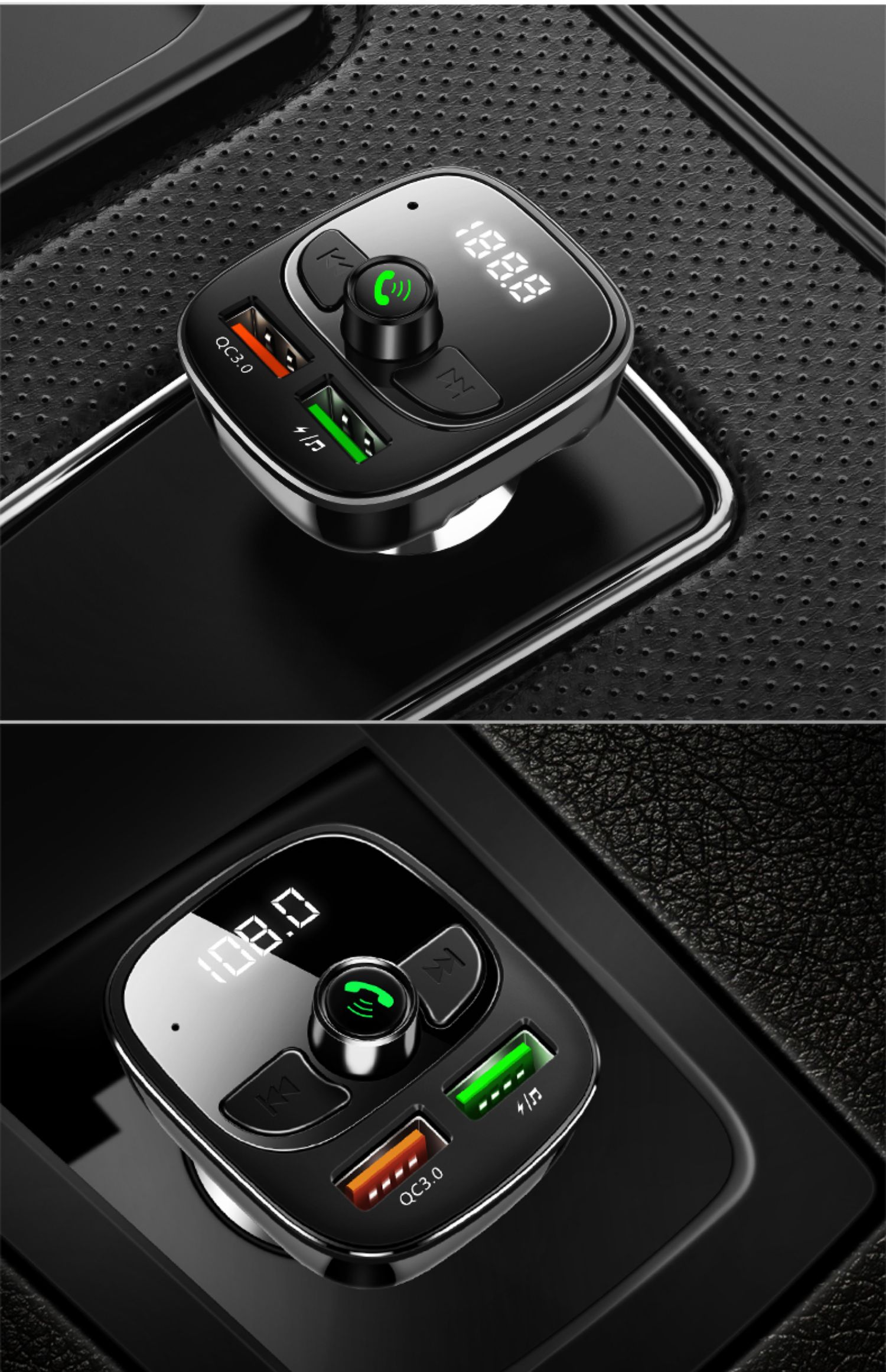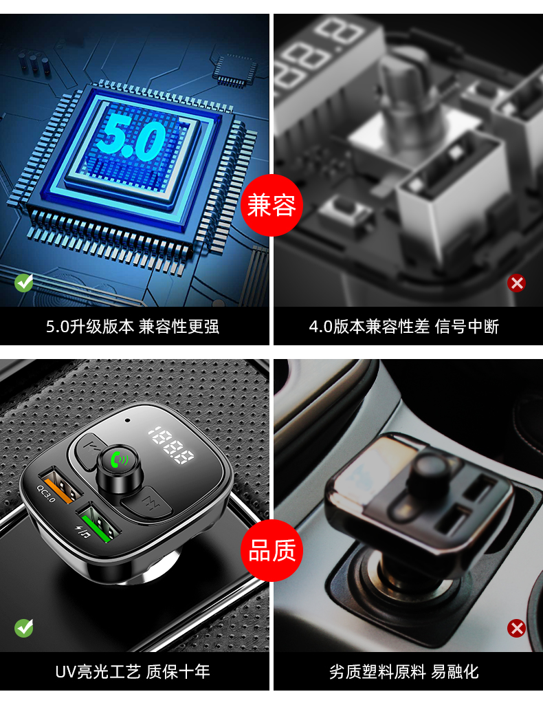 送二合一快充线!!双USB智能快充,手机蓝牙播放,U盘/tf卡播放,接听电话,电压检测,只需轻轻一按,方便自如,一键搞定车生活,不限车型!【赠运费险】