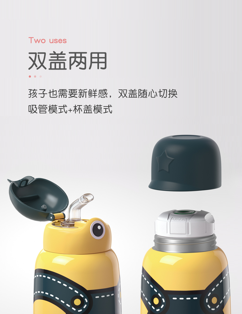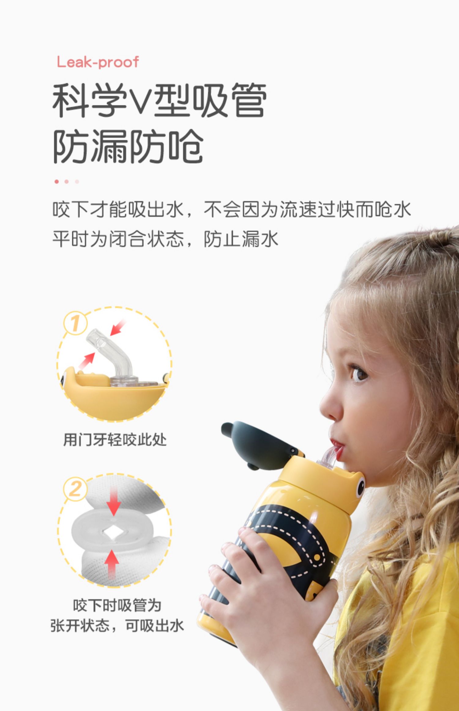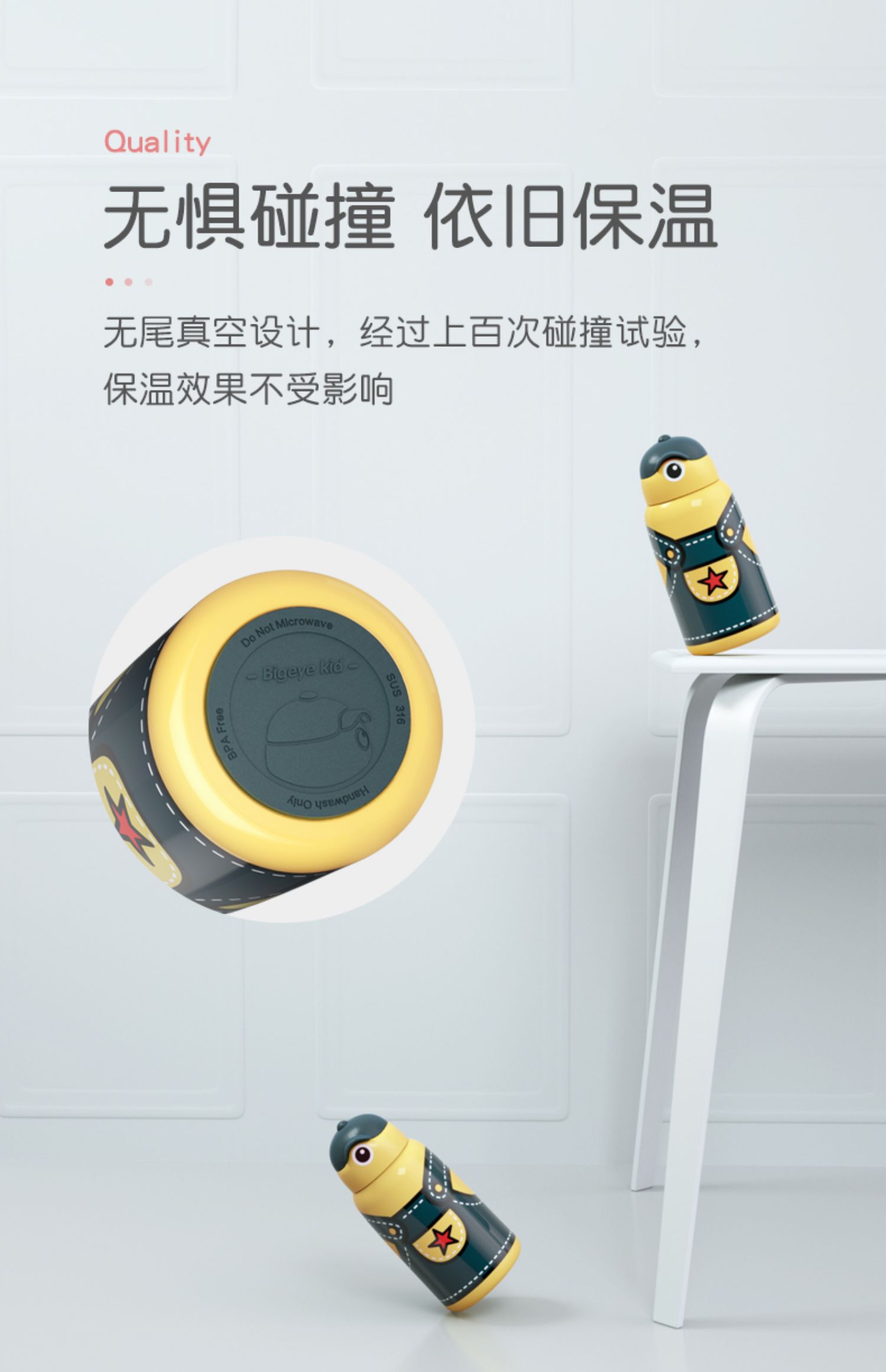 来自瑞典品牌精髓,个性化小黄人造型杯身和羽绒服杯套,使用医用级别316不锈钢,双盖两用(不含BPA,安全无味),防喷,防烫专利,550ml大容量,24小时持续保温,免费刻字!【赠运费险】