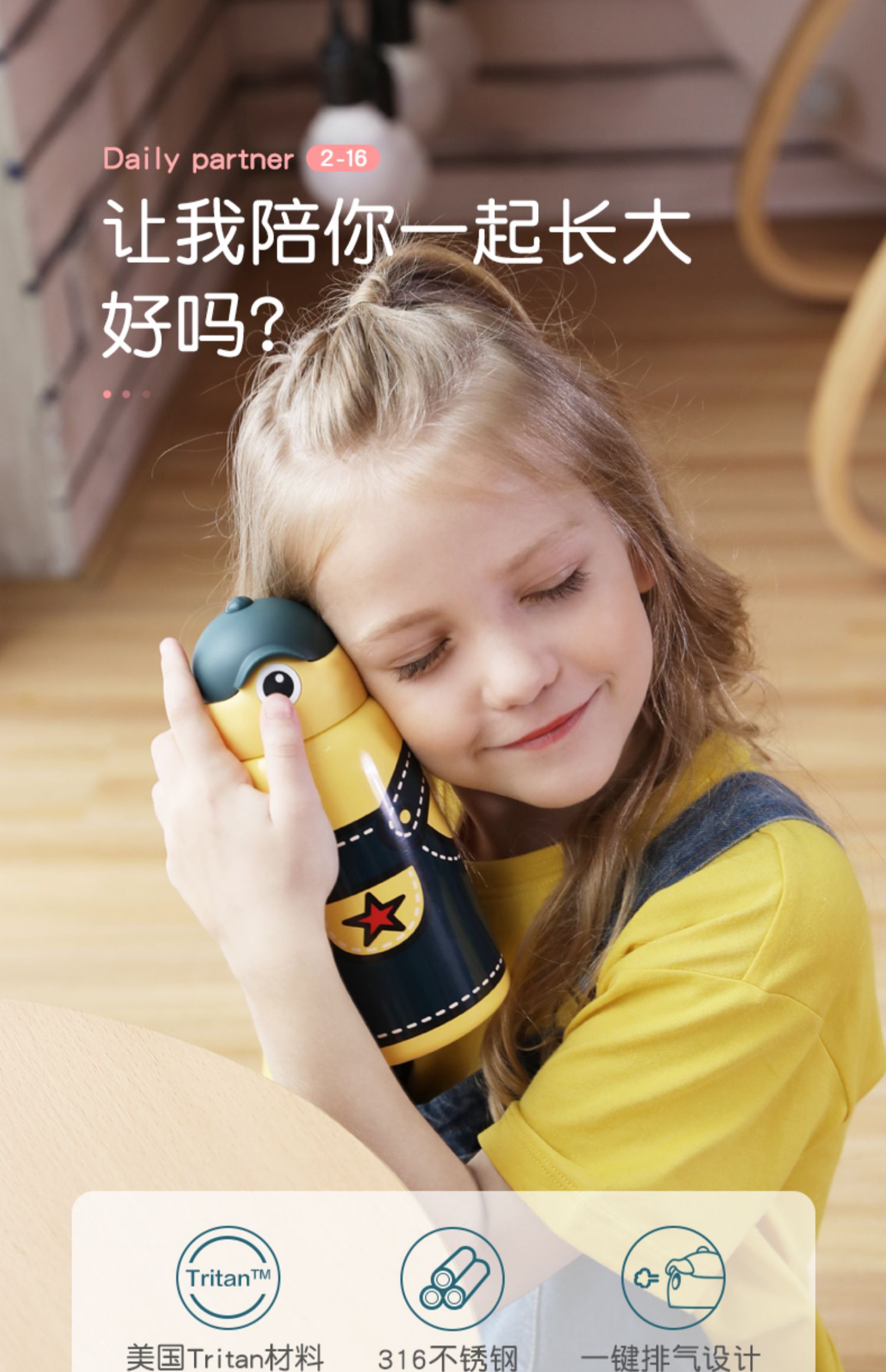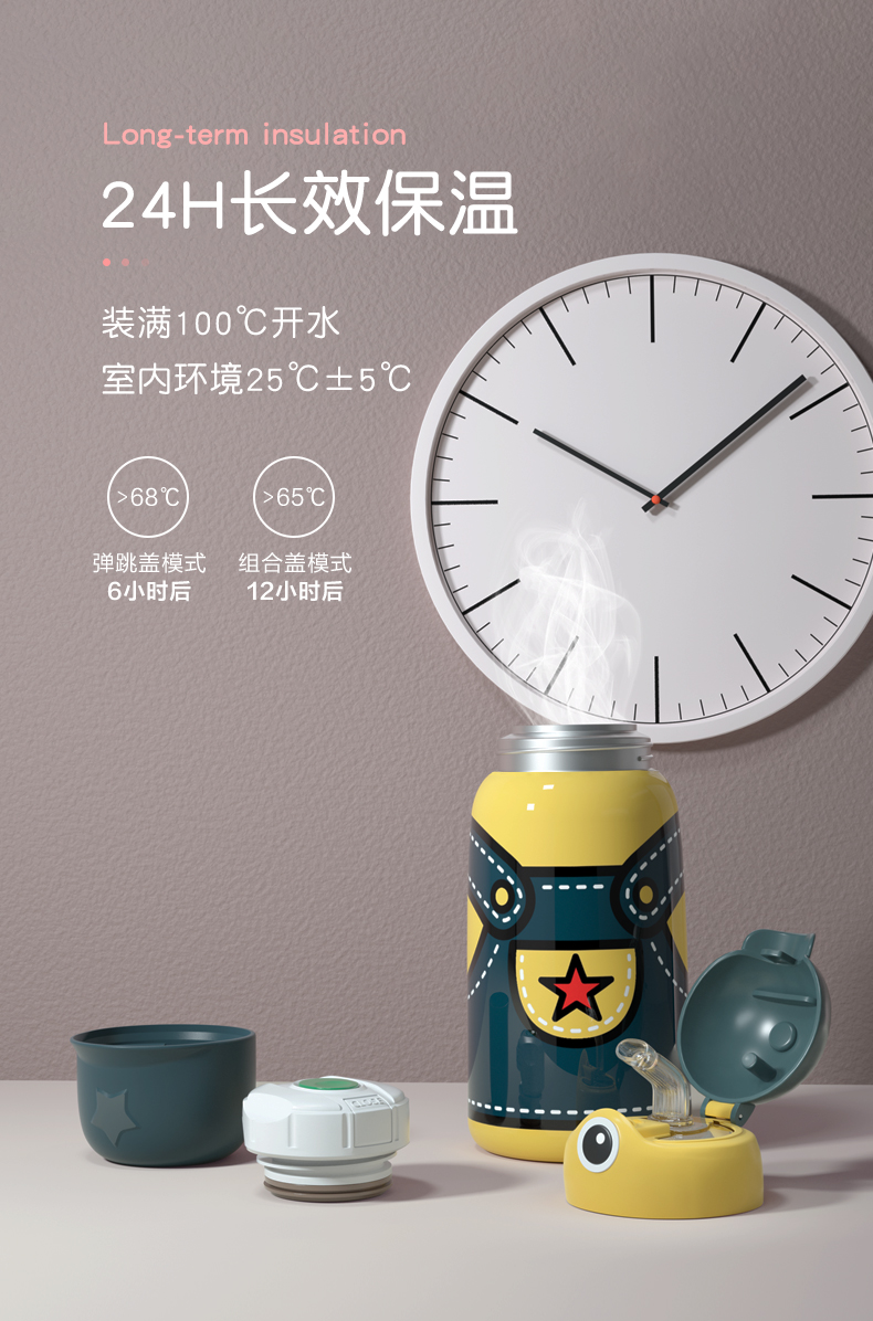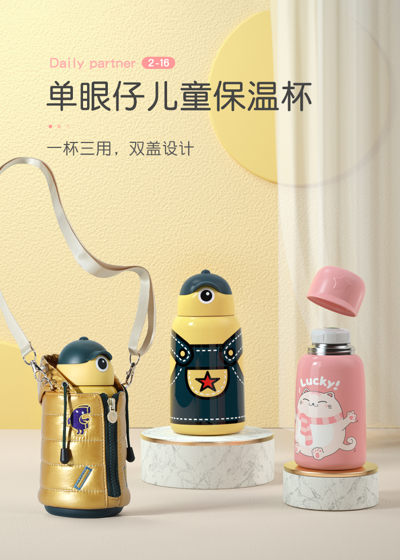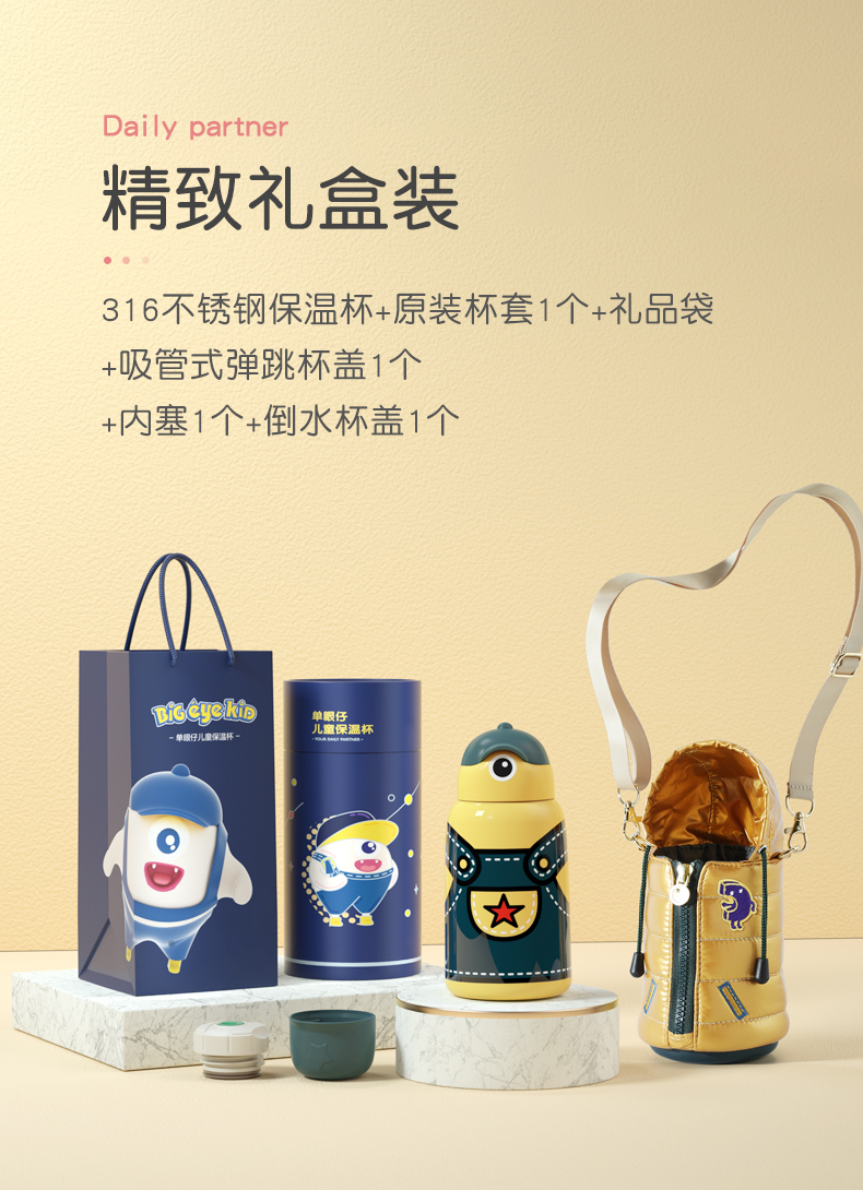 来自瑞典品牌精髓,个性化小黄人造型杯身和羽绒服杯套,使用医用级别316不锈钢,双盖两用(不含BPA,安全无味),防喷,防烫专利,550ml大容量,24小时持续保温,免费刻字!【赠运费险】