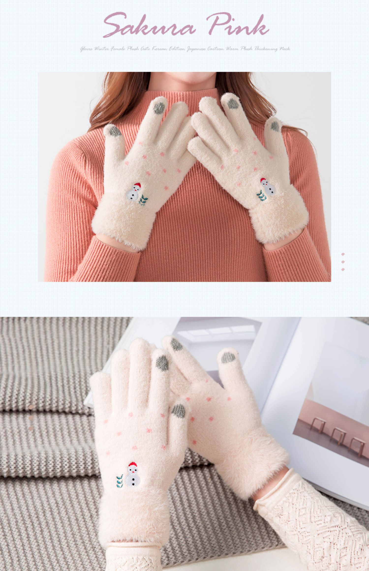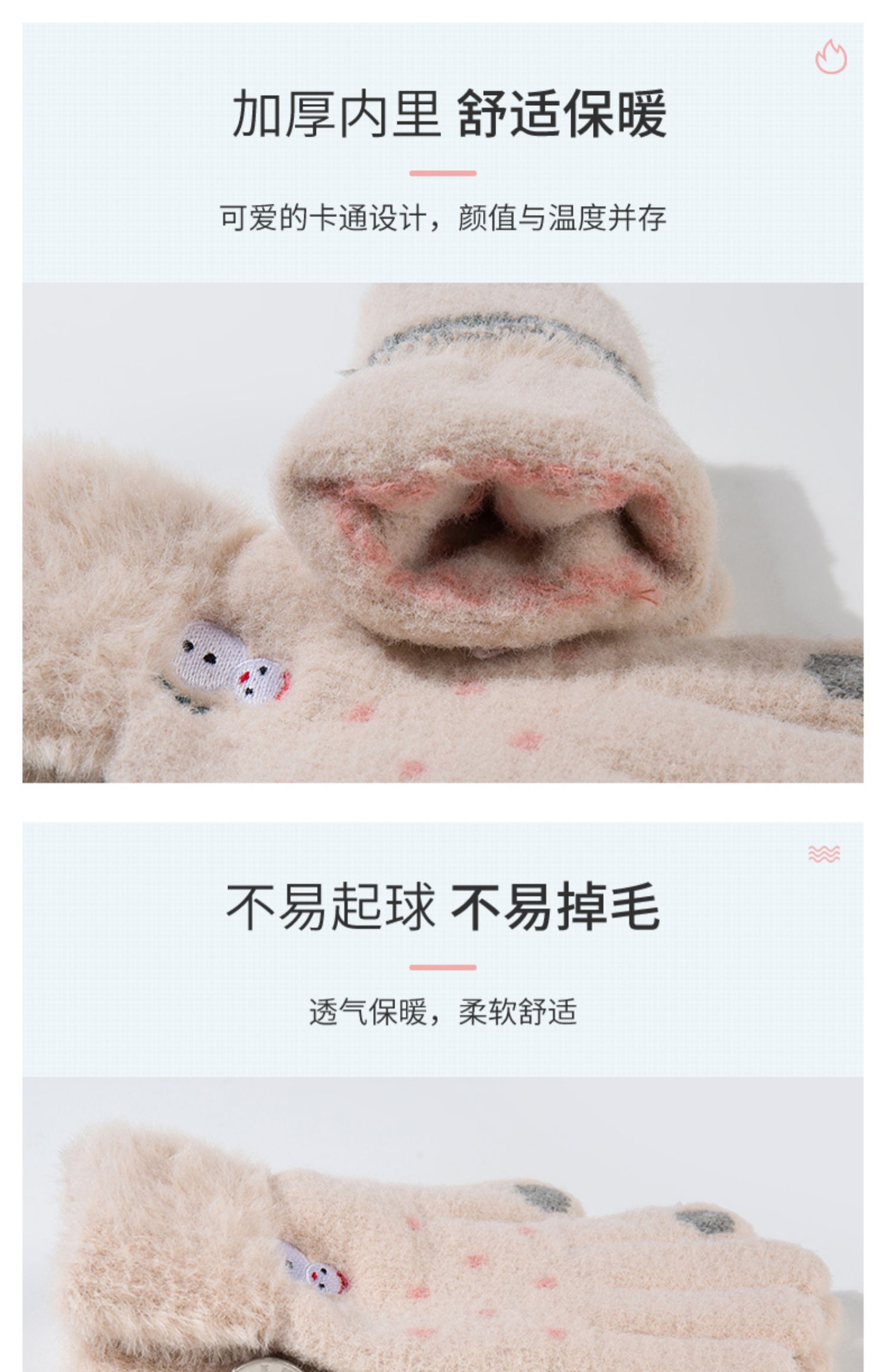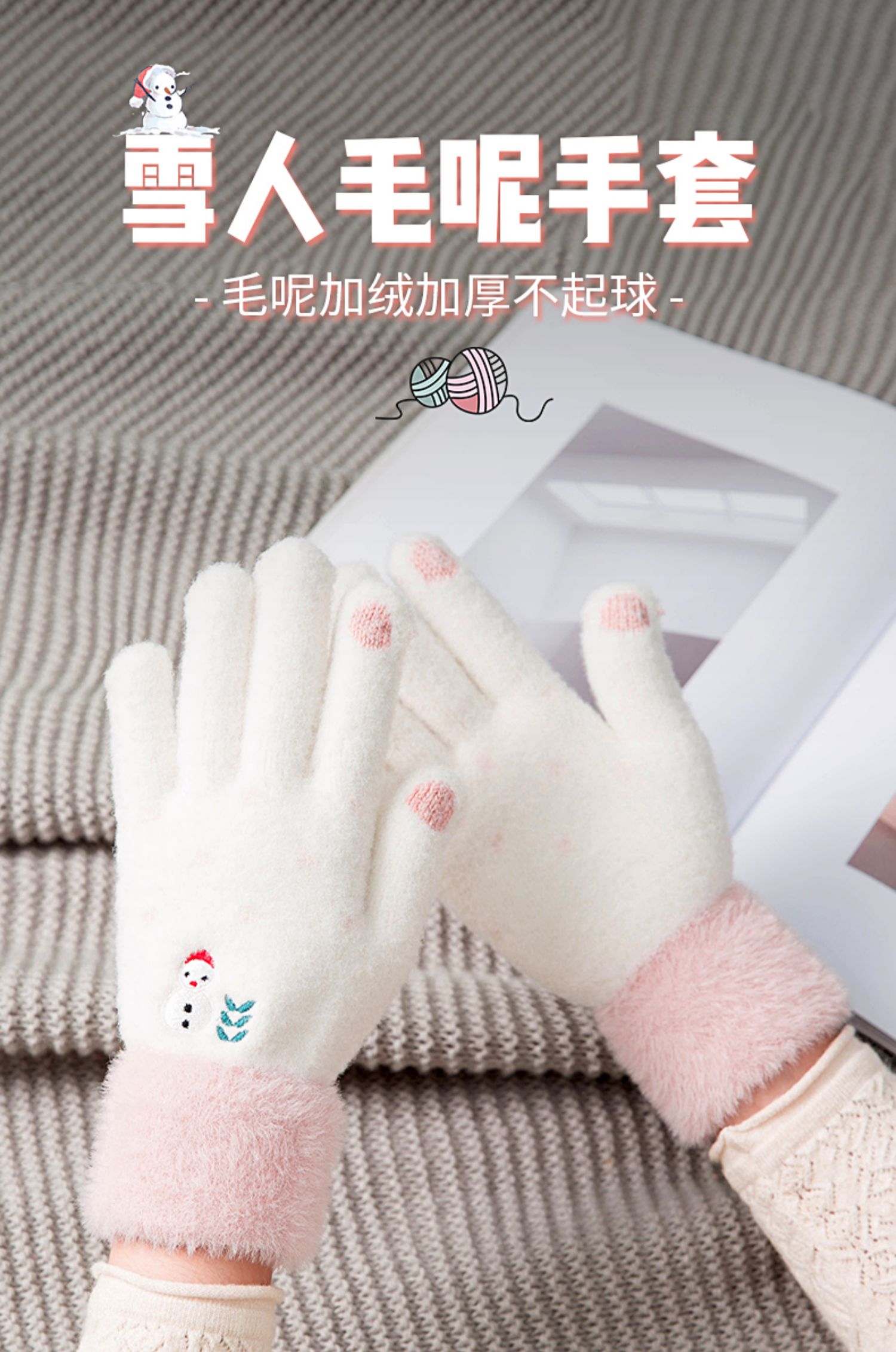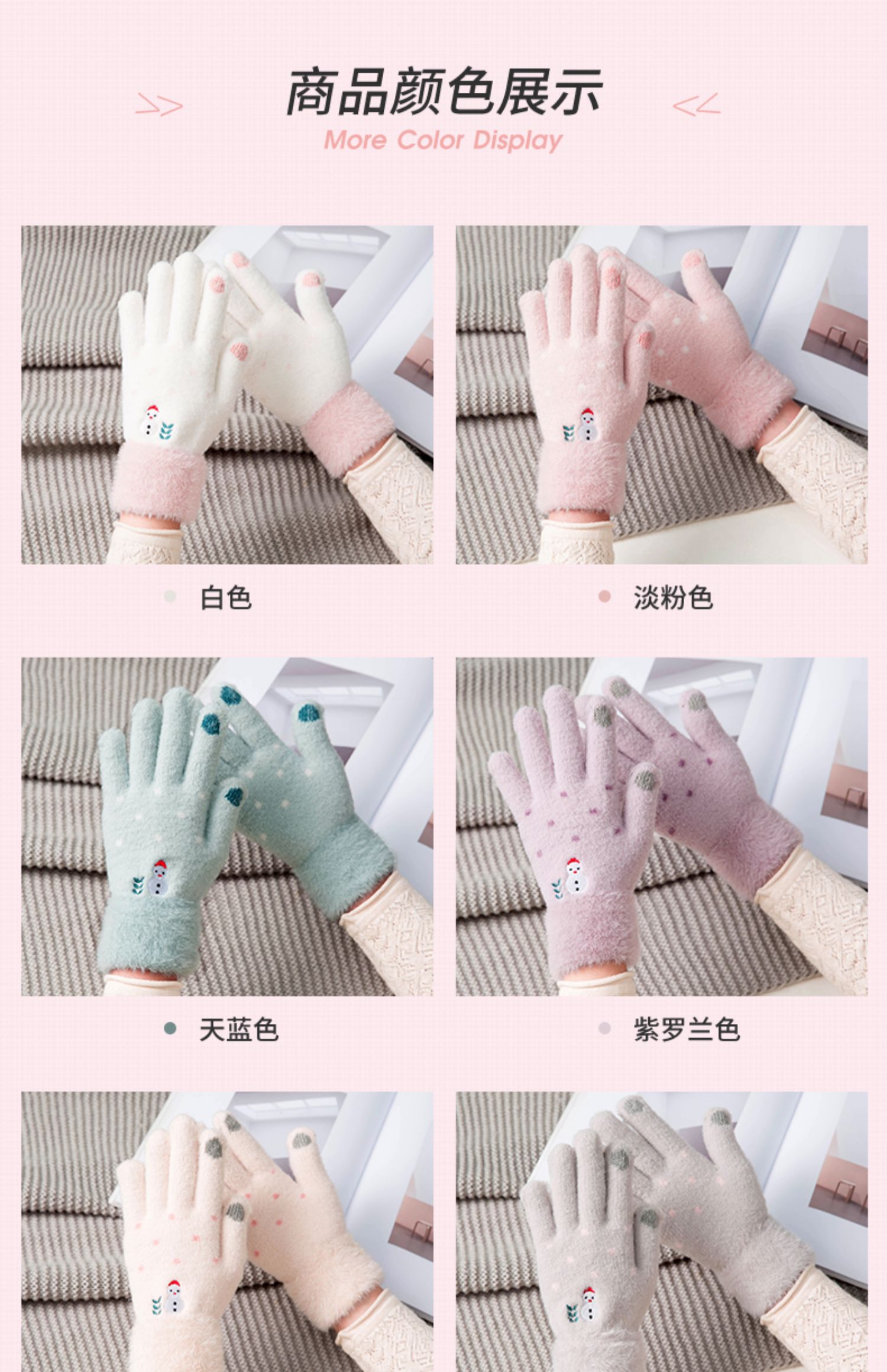 超暖超可爱不起球,腕口特殊设计,保暖亲肤,实用,加绒防寒,颜色众多,卡通雪人版,清新亮丽,内外加绒,可以戴着手套玩手机,零下十几度一点都不会觉得冻手!七天无理由退换!