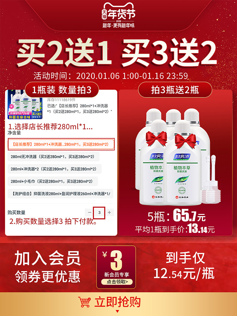 【买2送1】妇炎洁正品保障,多种草药,抑菌止痒,温和不刺激,祛除异味,护理私处,女神必备!!私处无烦恼,洗洗更健康!隐私发货!
