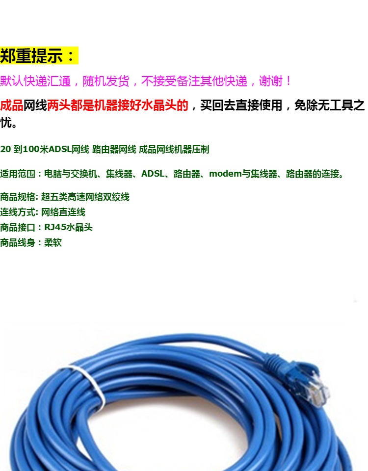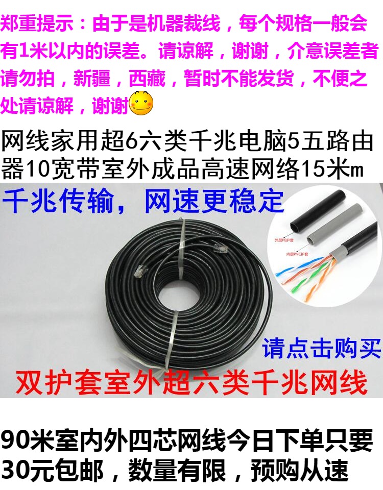【限时抢购】超五类高速网线,改善网速,提速必备!防水防晒室内外都可以用,双层皮8芯网线,万兆传输,有双屏蔽,抗干扰的作用,镀金触点,持久耐用,稳定传输,高速稳定,线长10米到100米可选购!