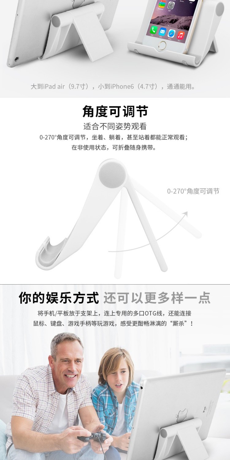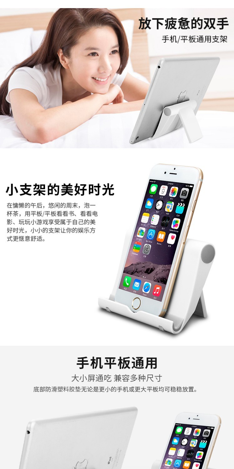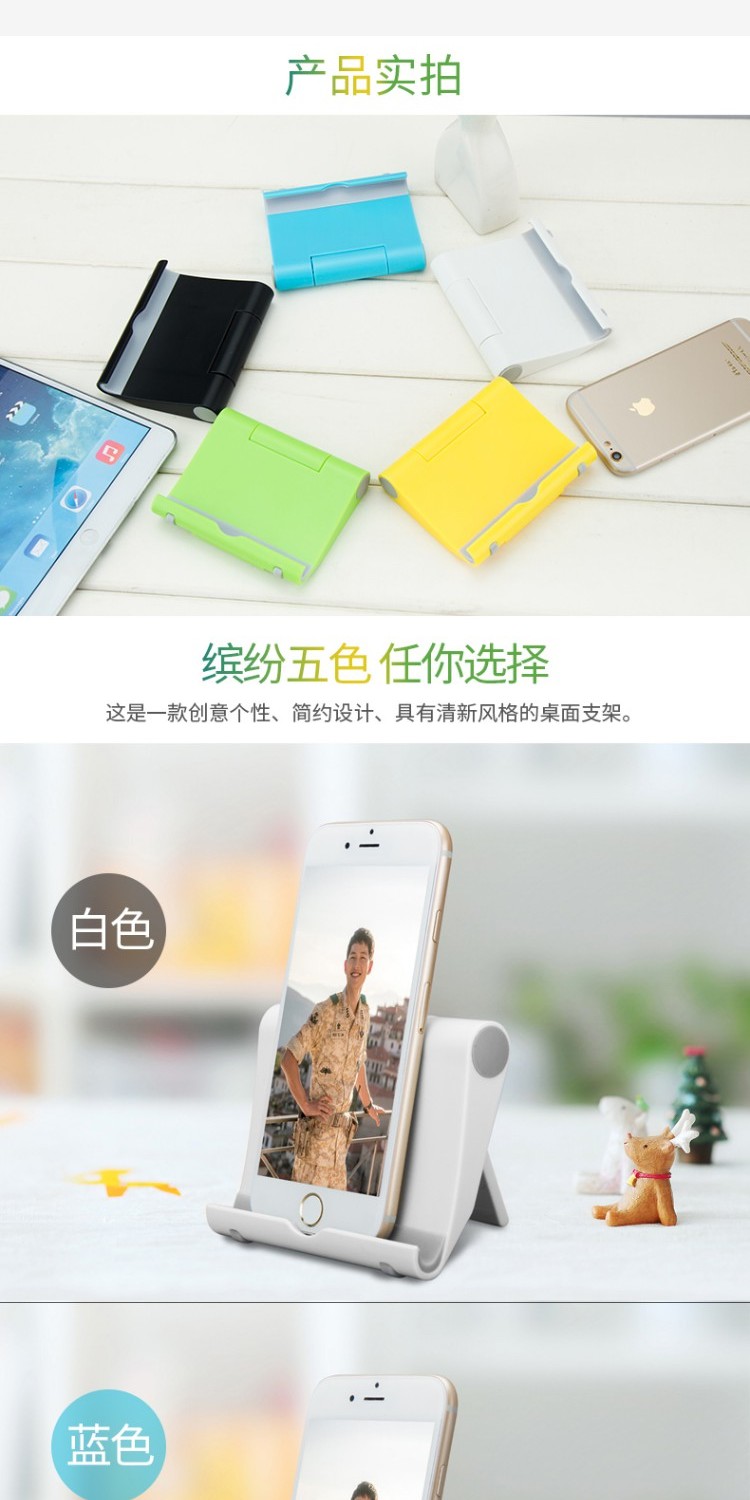【赠品多多】底部防滑塑料胶垫,0-270度全角度调节,时尚潮流,精致小巧,多色可选,满足不同要求,所有手机平板都可以使用。