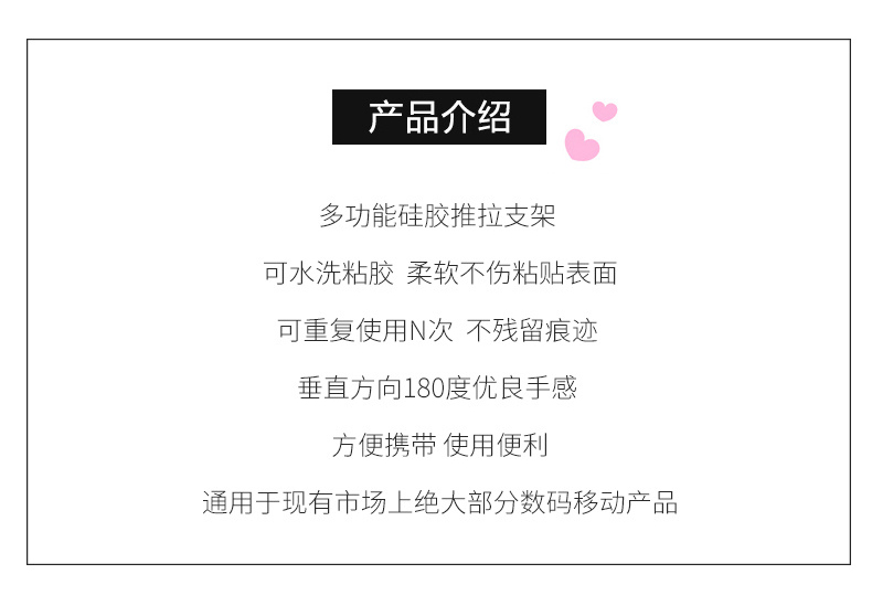 优质硅胶,多功能手机支架,超薄便携,可水洗粘胶,柔软不伤机身,重复使用不留痕迹,可垂直180度支撑,通用几乎所有手机!多款多色可选,超可爱~