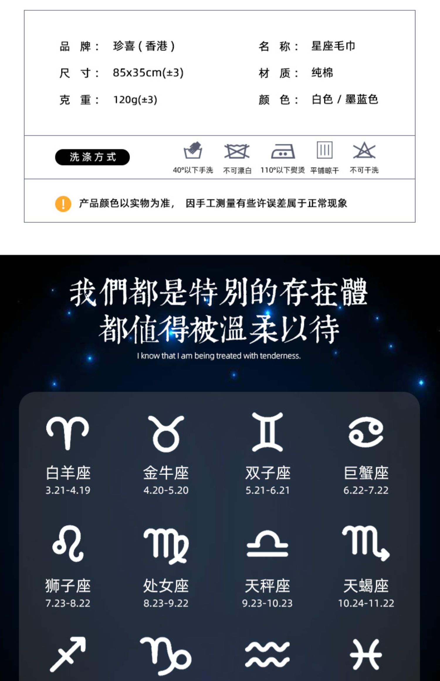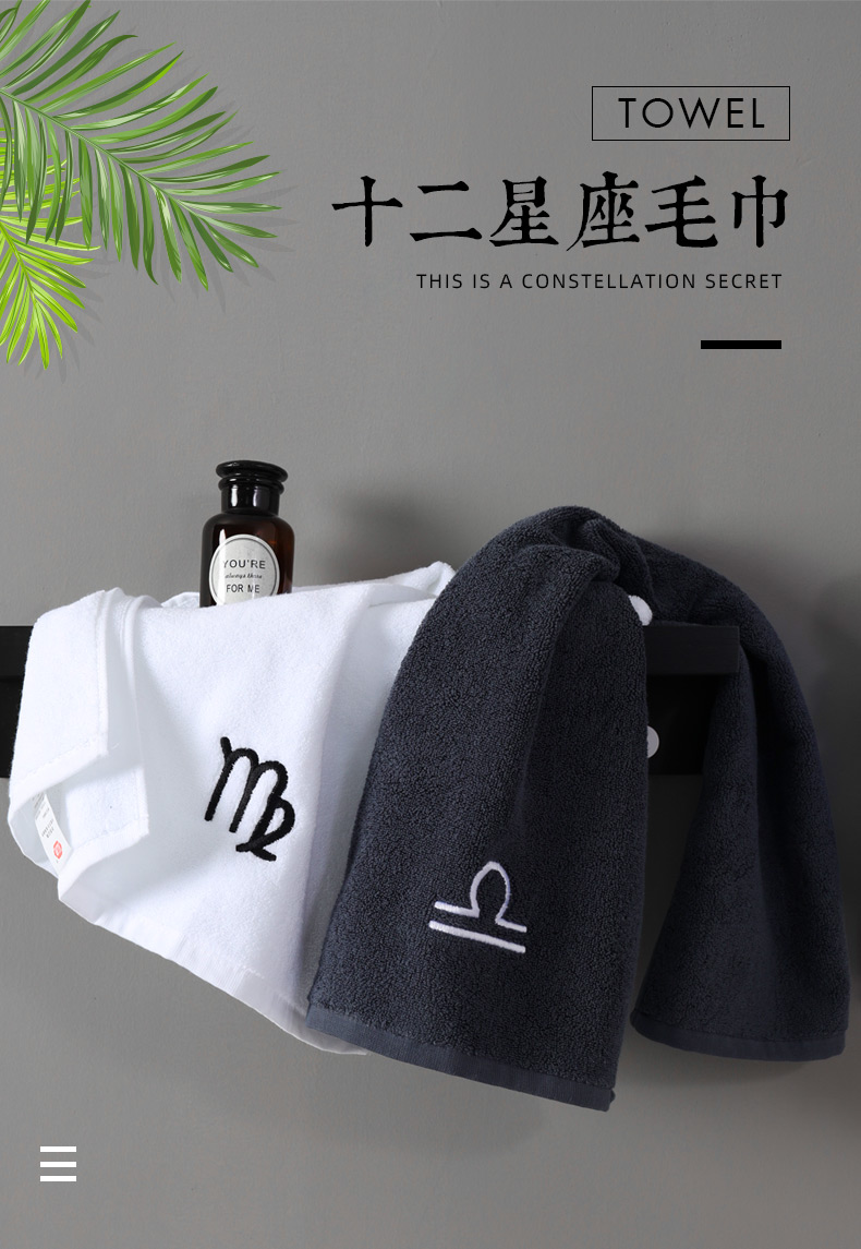 【买就送价值15元个性牙刷】新疆长绒棉,天然特长棉纤维,厚重质地,经久耐用,越洗越柔,升级加厚,比普通毛巾加长15%,十二星座,赋予特殊的意义,专属于你的毛巾~