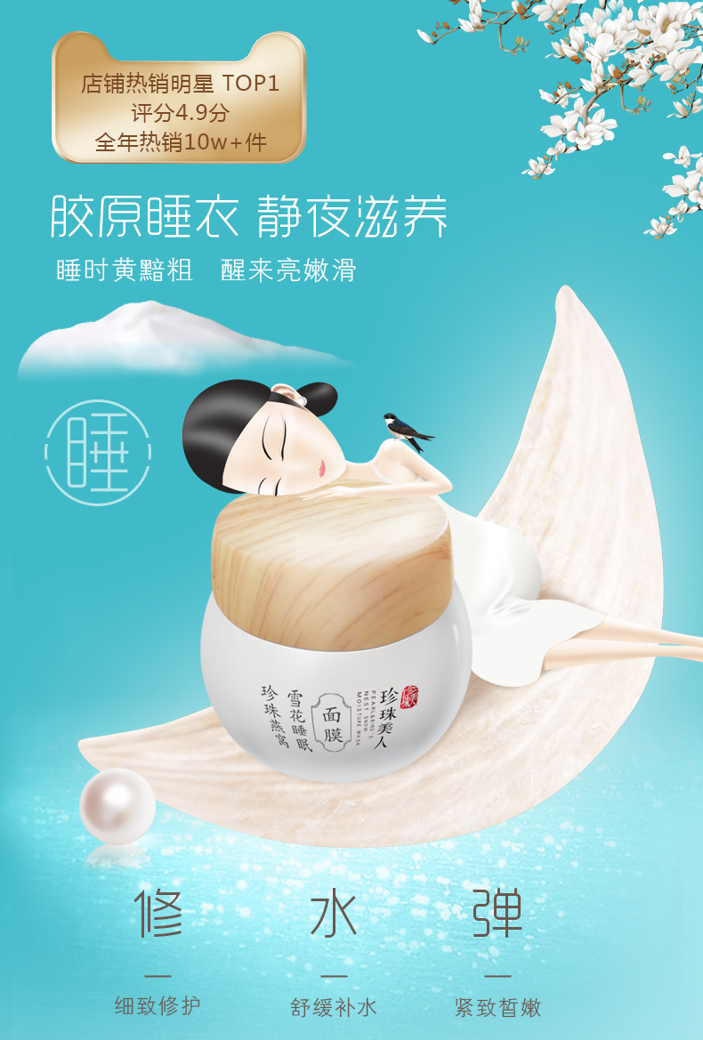 民国风,增加皮肤弹性,改善暗沉,提亮肤色,补水保湿,提拉紧致,紧致肌肤,滋养肌肤,珍珠护肤艺术家,免洗安睡,一晚睡出水美人【赠运险费】
