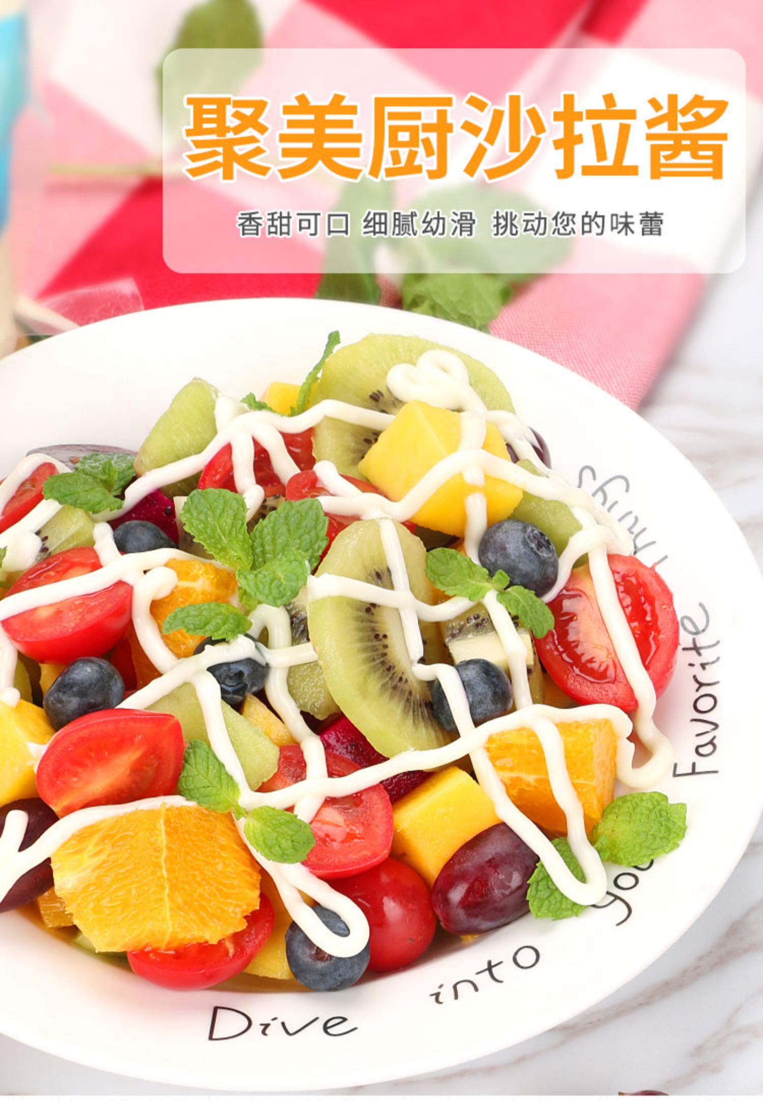 【拍下送挤酱瓶】聚美厨沙拉酱,在家制作水果沙拉,蔬菜汉堡,寿司,章鱼小丸子,手抓饼,酸甜软绵,传统工艺,味道醇香,让果蔬口感更香浓,赶紧抢购!【坏单包赔】