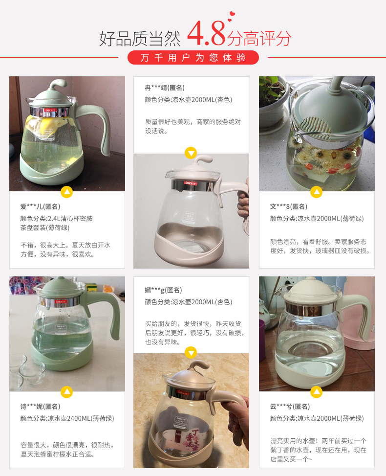 大容量,大容量,耐高温凉水壶,运输破损包赔,可当凉水壶,可当果汁壶,一壶多用,天猫大牌品质。
