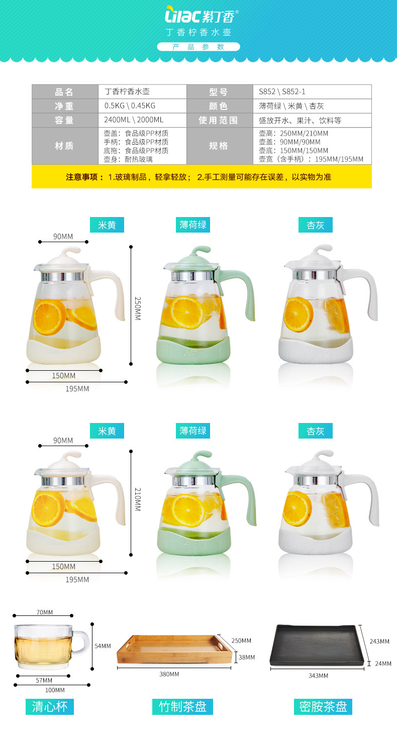 紫丁香耐热冷水壶玻璃果汁壶凉白开水壶