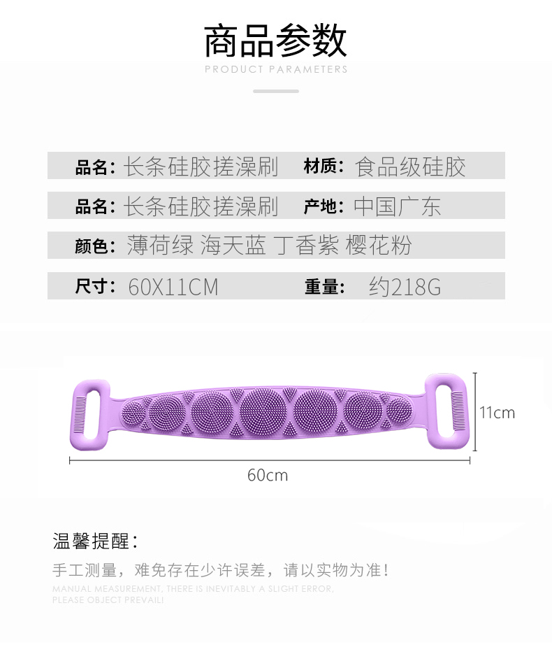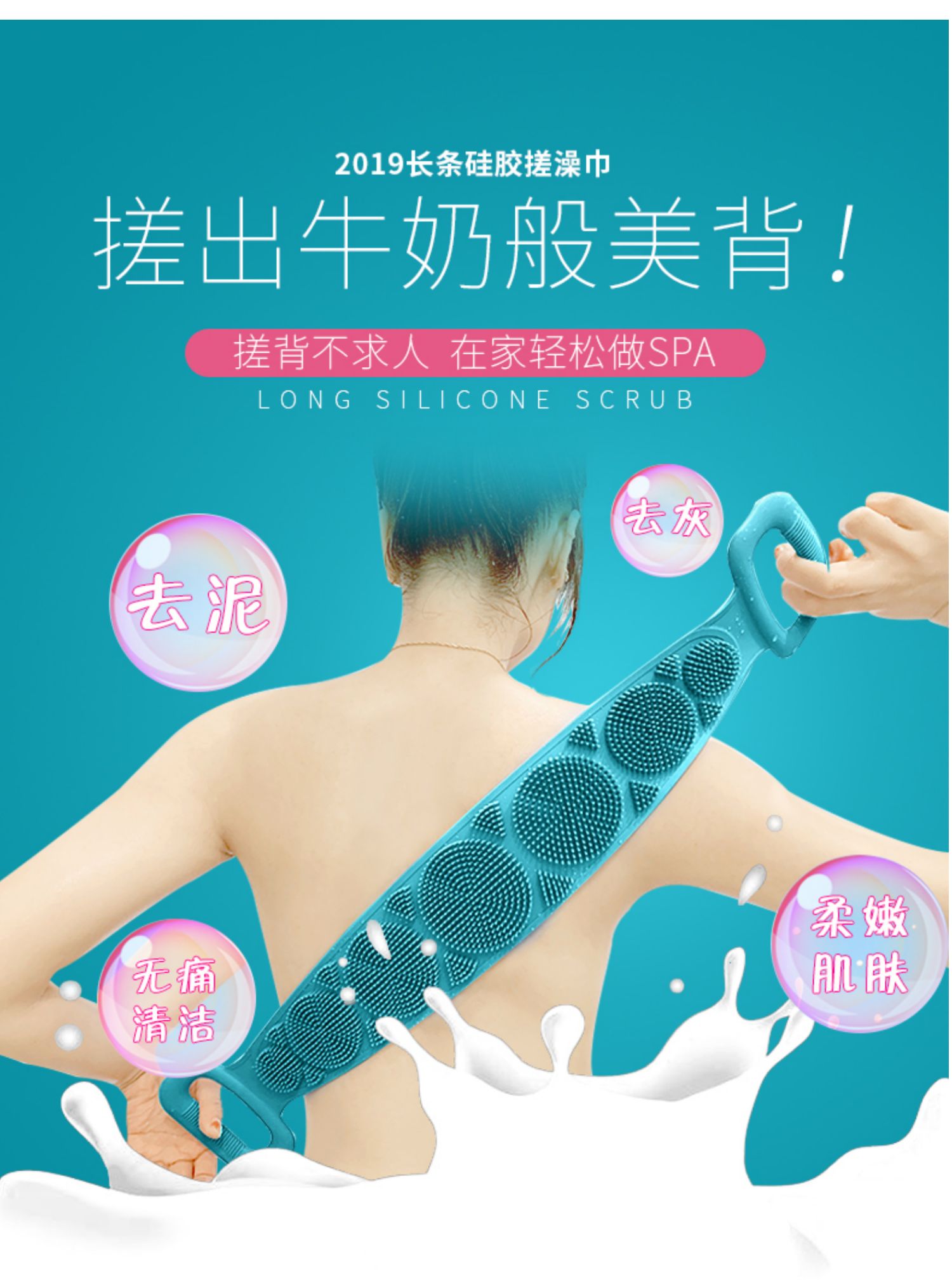 2019新款加长硅胶搓澡巾,千根双节刷毛设计,360°深层清洁;双面纹路设计,不同的搓澡体验;硅胶材质更耐用更安全【赠运费险】