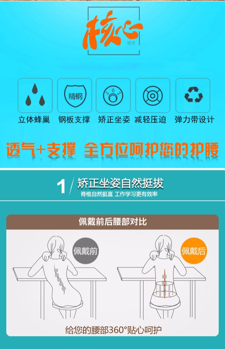 自发热护腰带,腰间盘突出的福音,支撑减压,纠矫正身,金属记忆钢板支撑,贴合人体腰部设计,纠正坐姿自然挺拔。