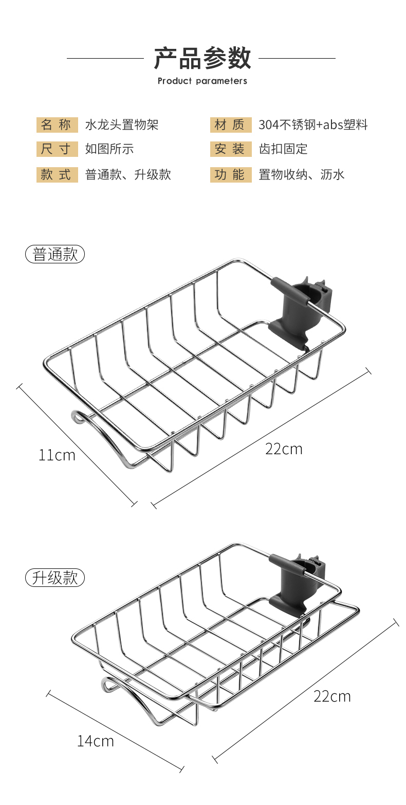 水龙头置物架不锈钢厨房用品,水槽沥水架子家用大全水池收纳架神器