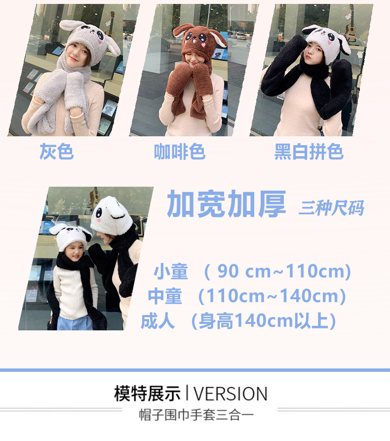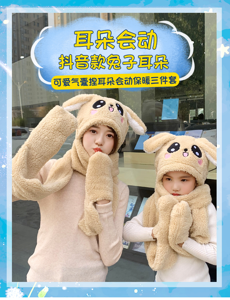 抖音爆火!!会动的帽子,内置气囊,一捏耳朵会动,软软萌萌超可爱!帽子、围巾、手套三合一,可爱又划算!跟孩子搭个亲自款,增进亲情非常有爱!