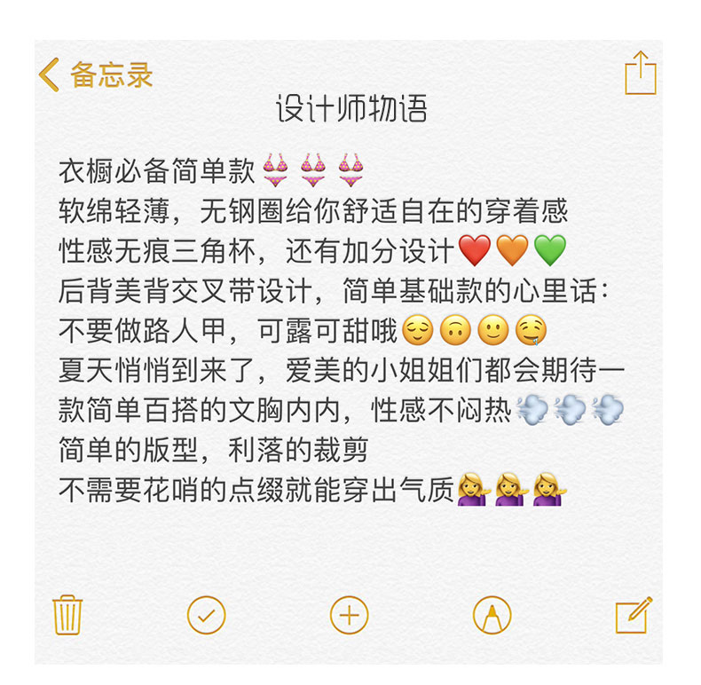 【全国包邮】大优惠,错过无。性感舒适,美背聚拢,可调节排扣,舒适无钢圈,软绵轻薄,无钢圈给你舒适自在的穿着感。不需要花哨的点缀就可以穿出气质。