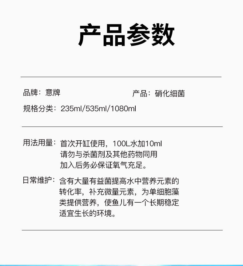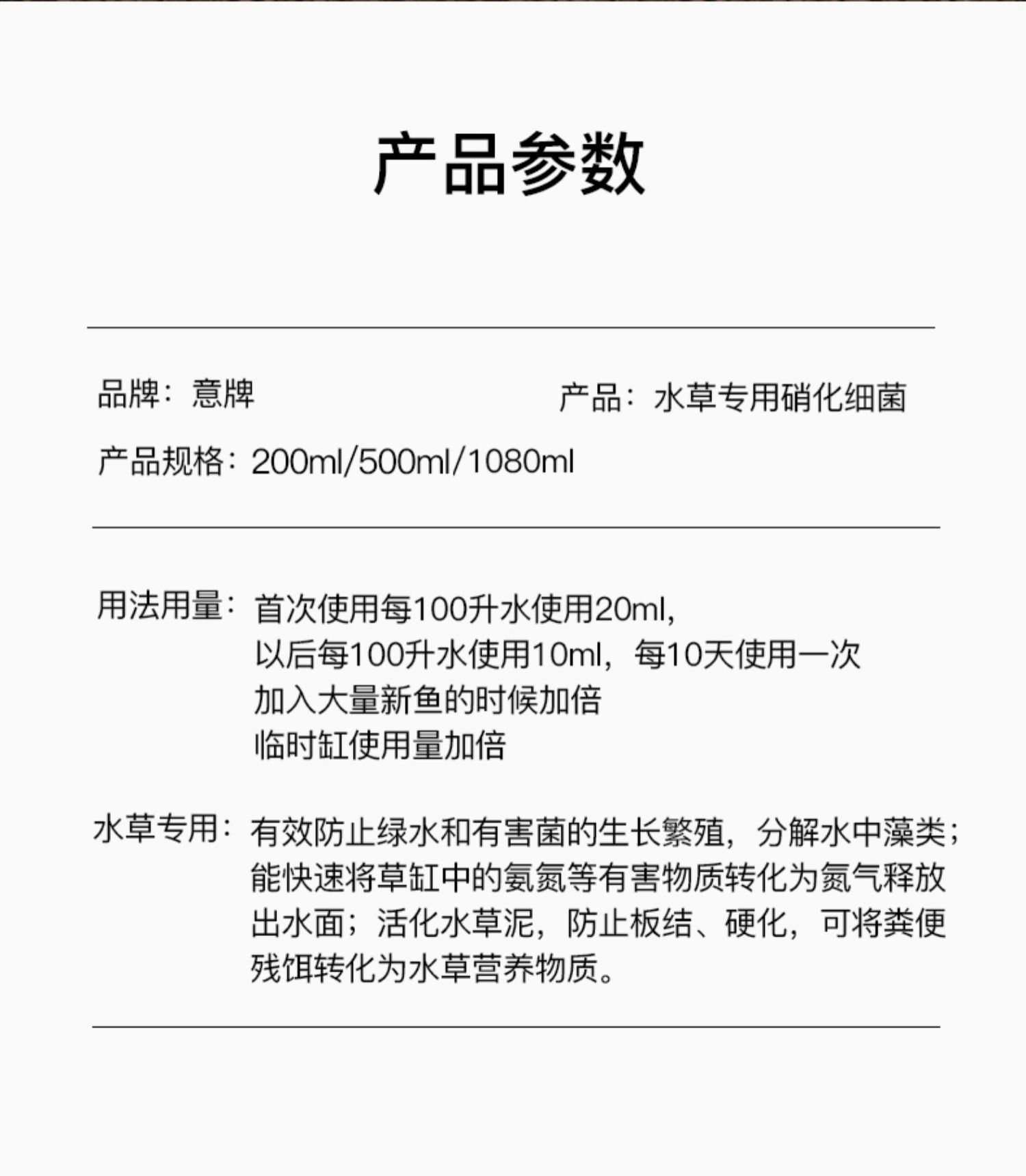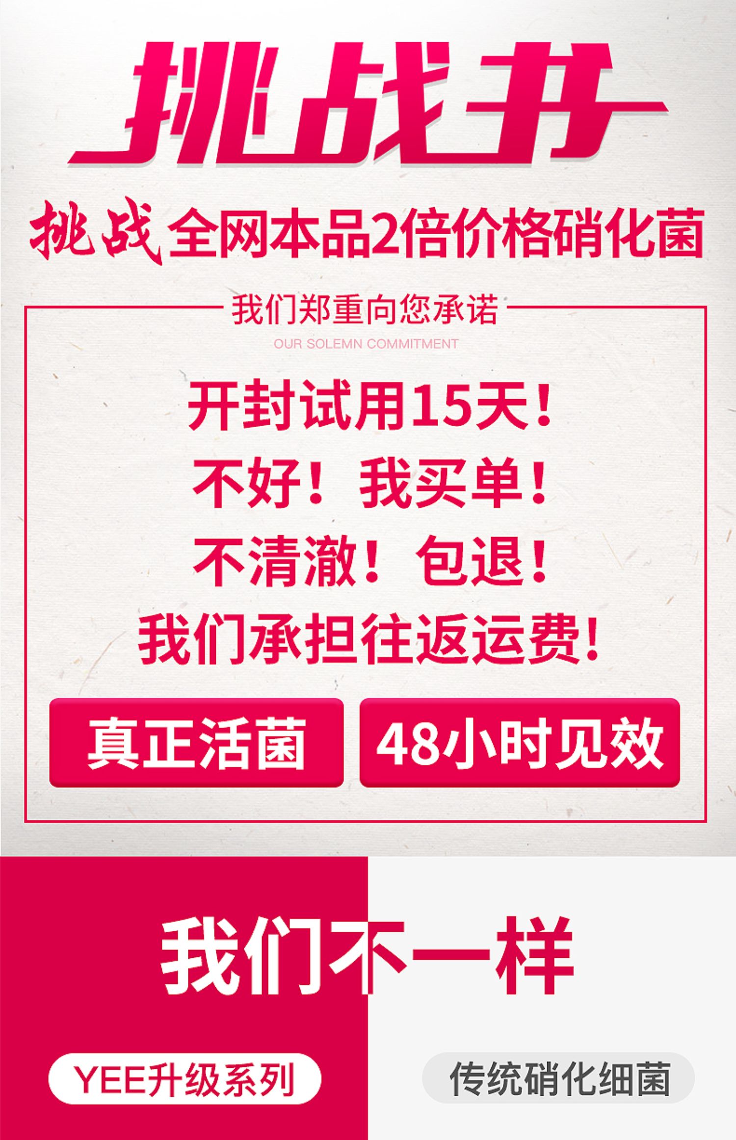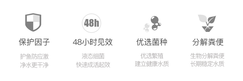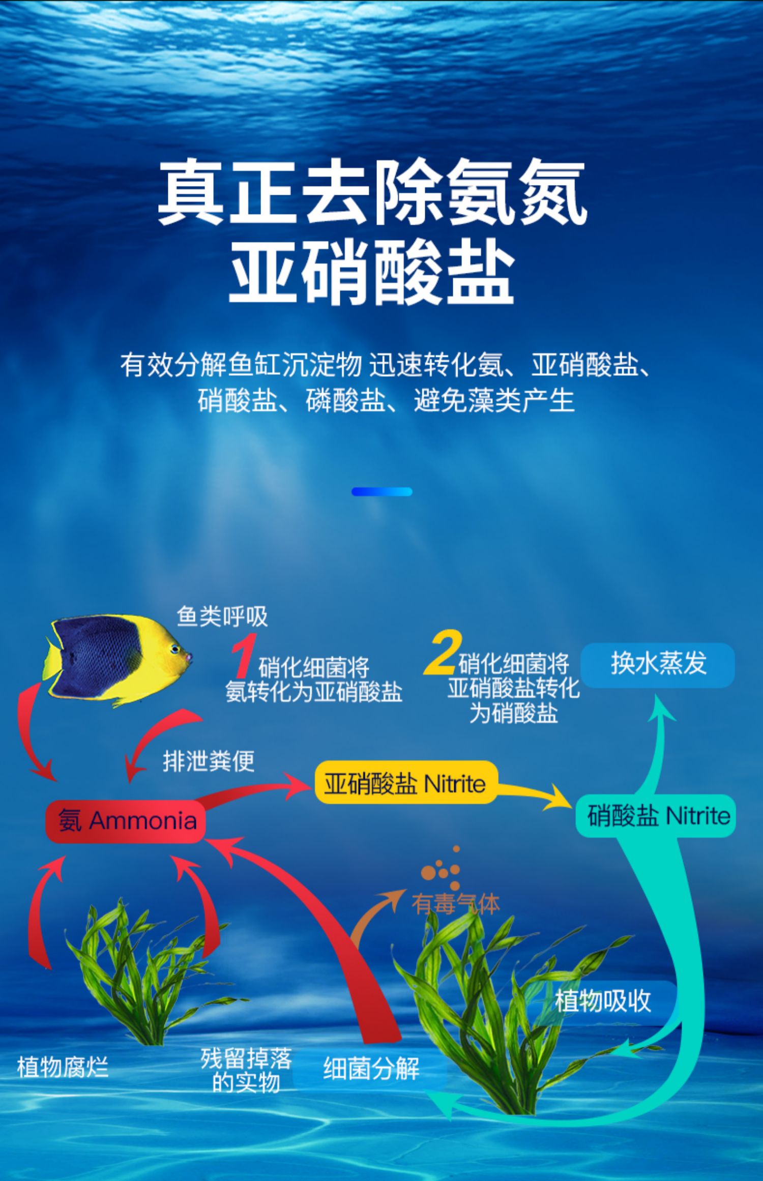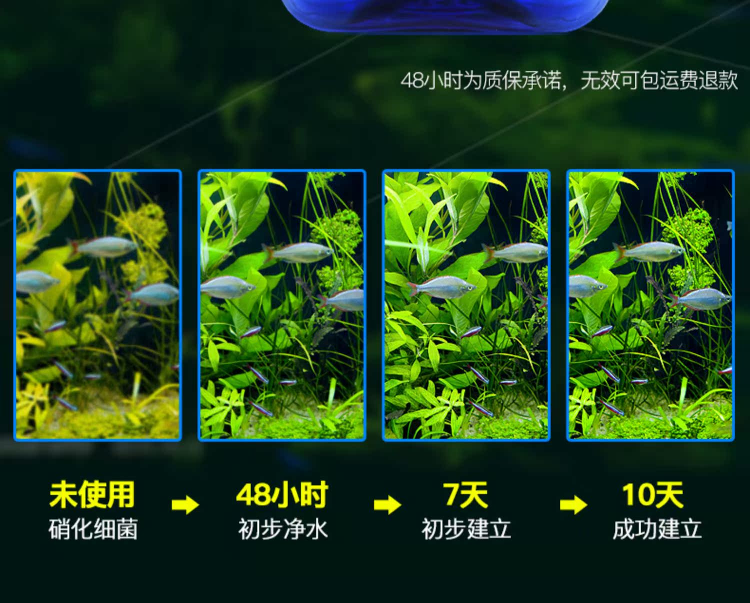 48小时快速起效,高浓缩鲜活菌快速打造空气缸!真正去除氨氮亚硝酸盐,有效分解鱼缸沉淀物,添加鱼体保护剂,免受细菌感染!复合流大菌种生物有氧提纯,全方位为鱼儿打造舒适健康环境!!