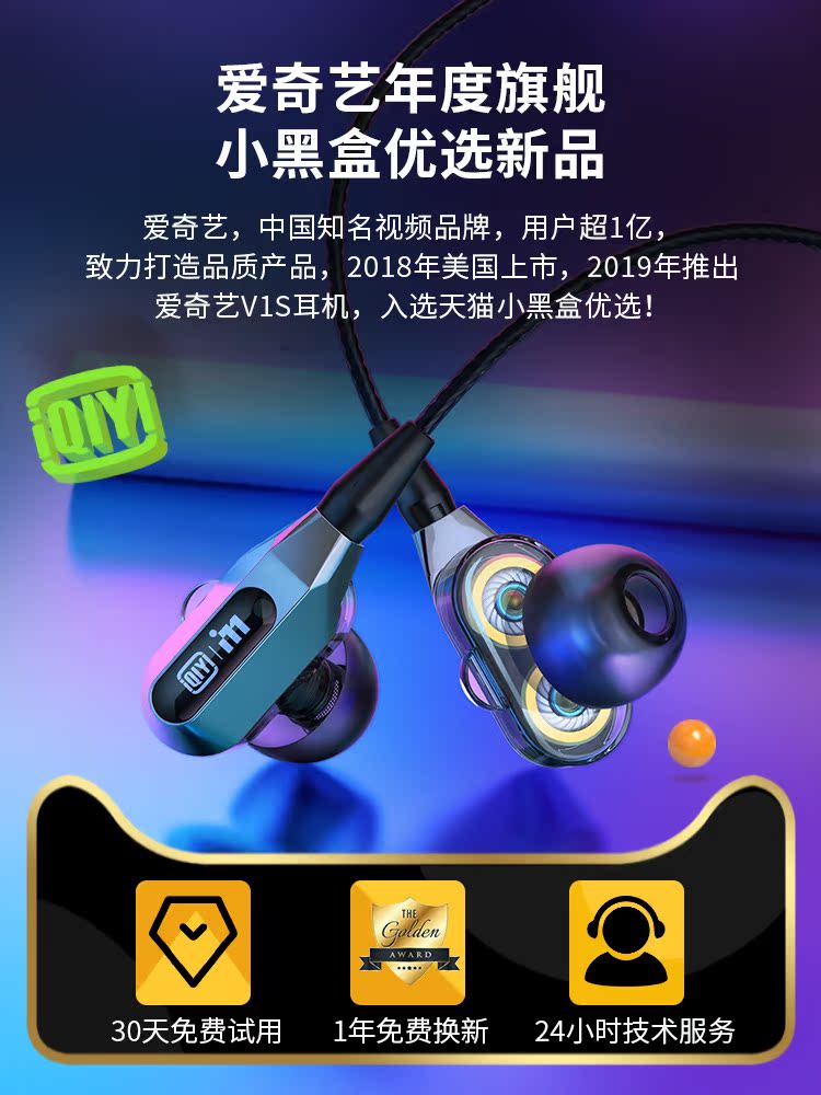 爱奇艺原装正品耳机,四核双动圈,震撼8D音效,电镀银色耳机头,迷人不张扬,低调有气质,7.1环绕立体声效系统,为电竞量身定做,职业玩家的选择【赠运费险】