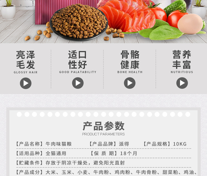 全猫通用派得猫粮牛肉味10kg