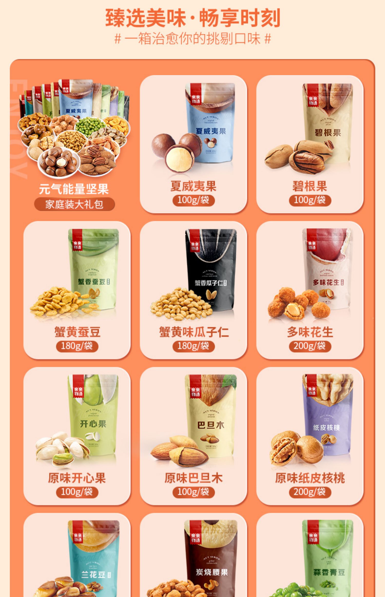 精选优质美味坚果,多种饱含幸福感的坚果,满满的幸福,大人小孩都爱吃~必备休闲零食~