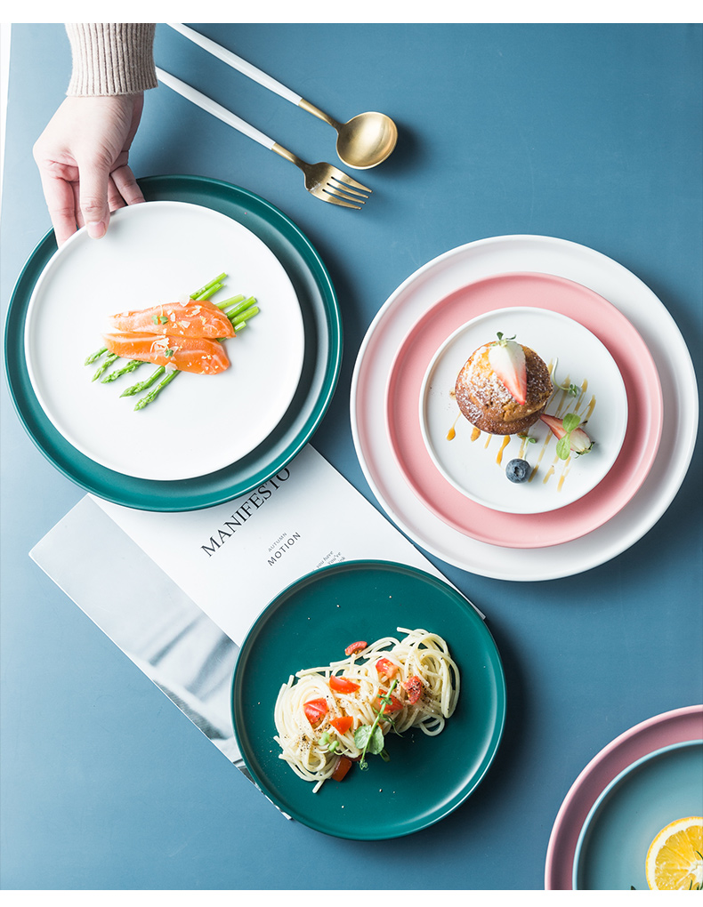 网红爆款~西餐牛排家用餐盘碟子,湿润细腻、淡雅清新、简洁大方,精制生活全盘开启。