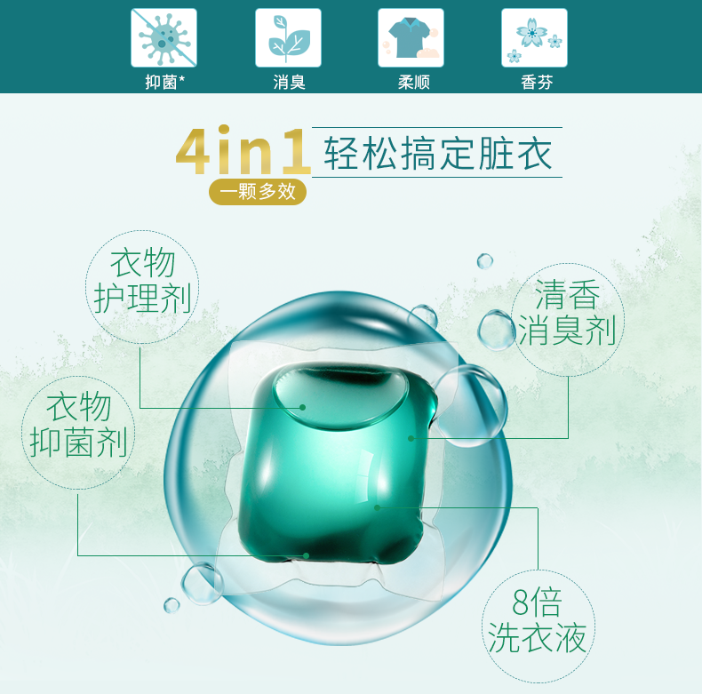抖音超火的洗衣凝珠!只要6.9,一包95g共12颗,一机放一颗就够啦,8倍洁净力,遇水速溶,多效4合1,抑菌除臭,衣物持久留香,权威质检用的放心~