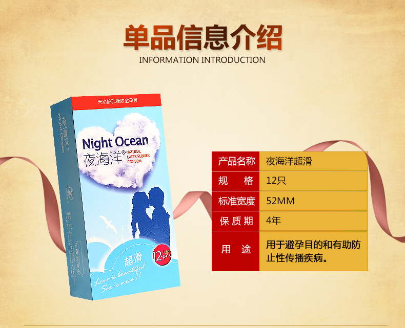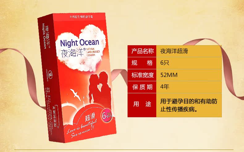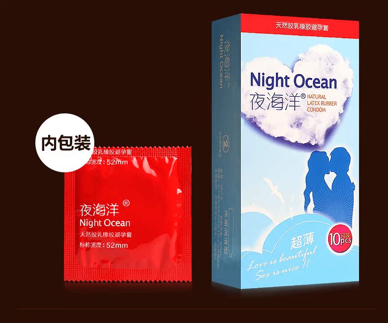 夜海洋超滑超薄避孕套,每一次相拥都让爱火燃烧,采用天然乳胶制成,贴身呵护,爱有品质,贴合平面设计,符合人体需求,适量润滑剂,更光滑,更舒适。