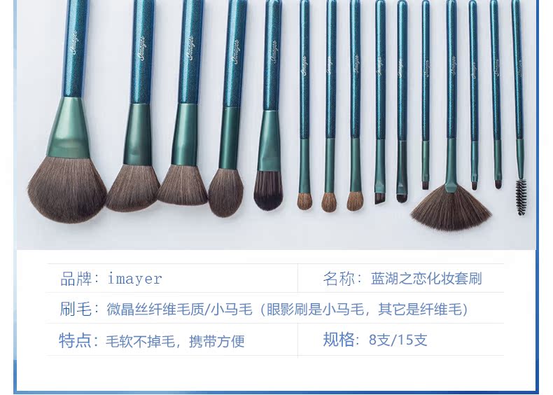 艾魅尔化妆刷套装8支装;眼影刷是小马毛,送刷包,修容刷全面,高效蘸取抓粉力强,快速打造均匀妆面,呈现细腻质感,柔软亲肤,上妆服帖自然,Ps:15件套还有全套的修容刷,抢到就是赚到!!