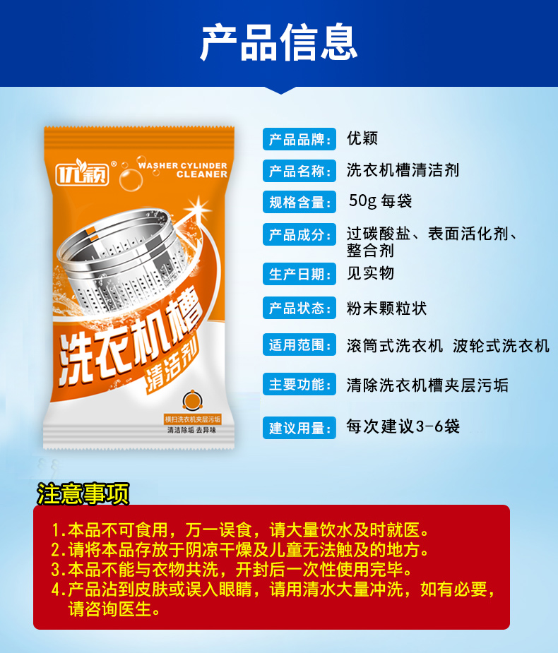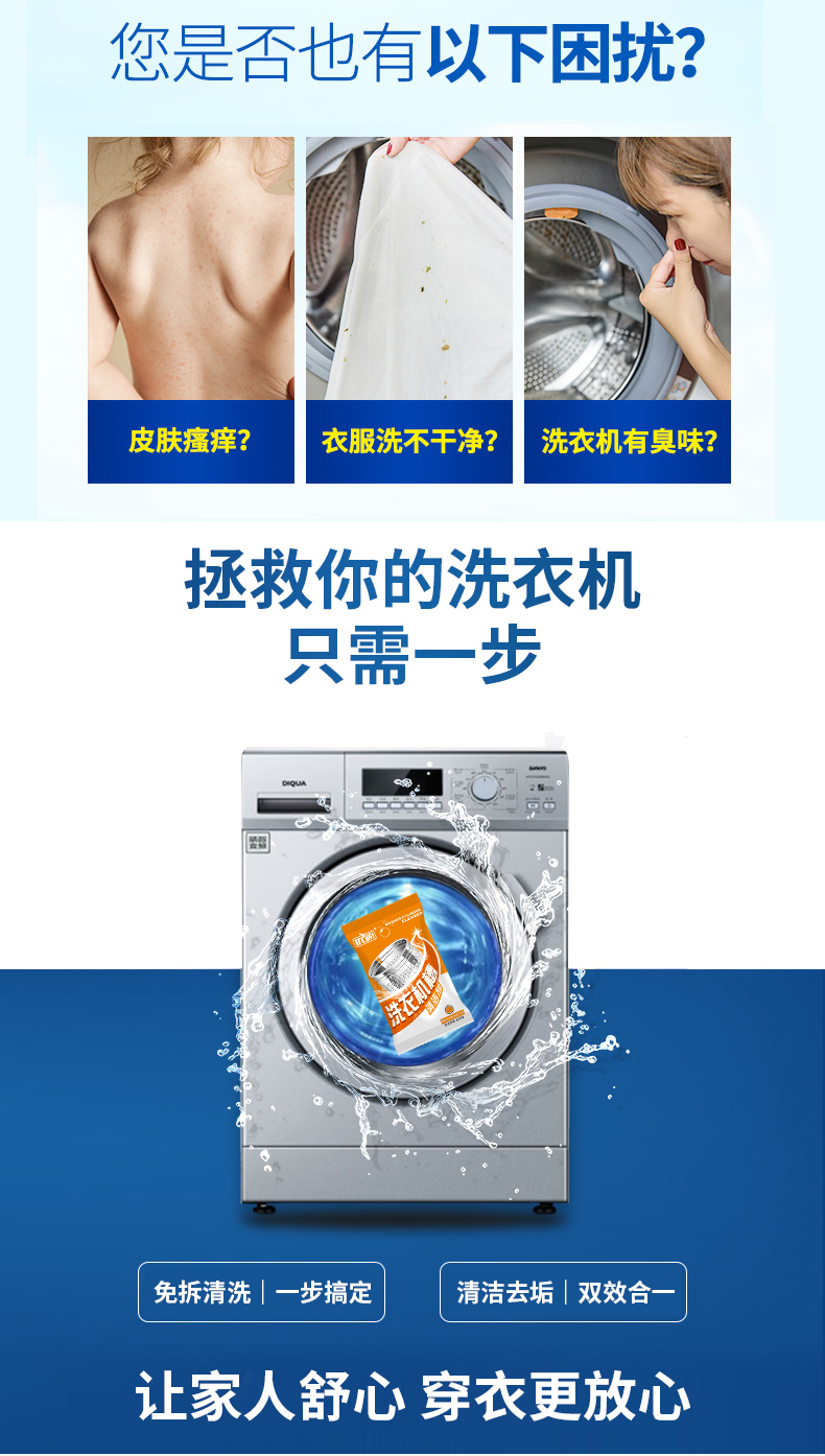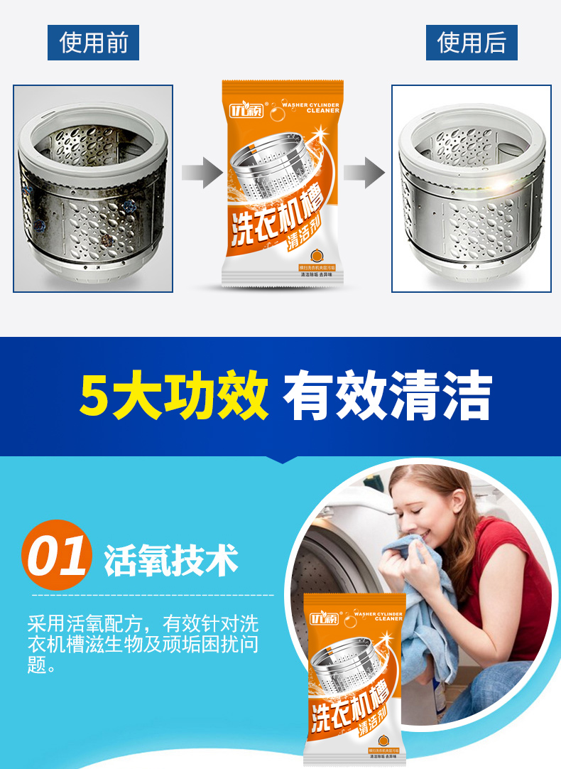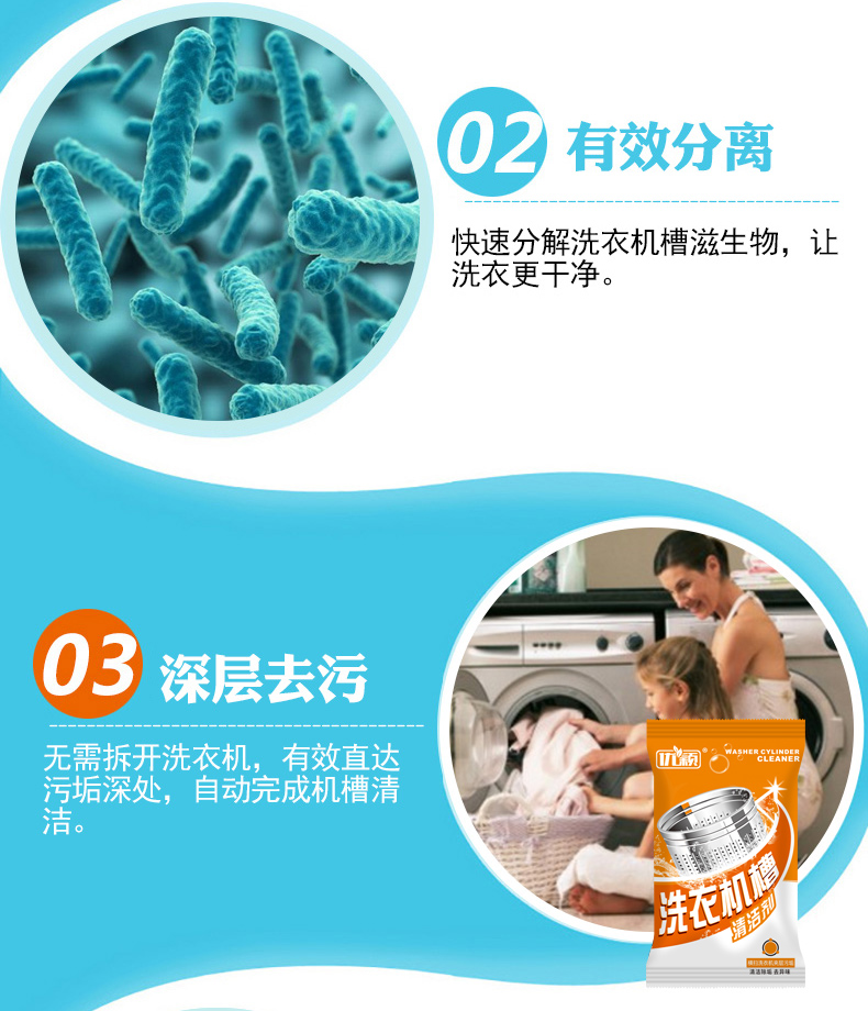 【一袋不到一块钱】】全新升级,科学配方,强力深层清洁洗衣机槽、内筒、夹层的顽固污垢,迅速瓦解,杀菌消毒,防止衣物的二次污染,清新祛味,适用所有机型,是家家必备的清洁神器!