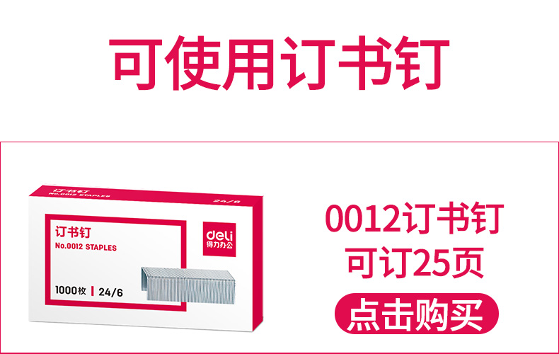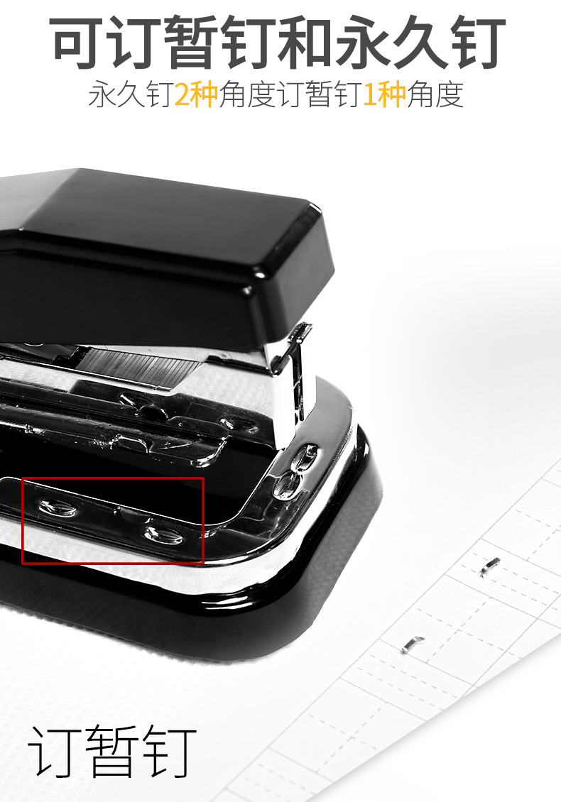 360°旋转,可钉3种角度,中缝2-50张纸,满足多种装订需求,送钉和起订器。