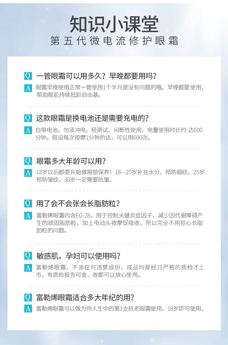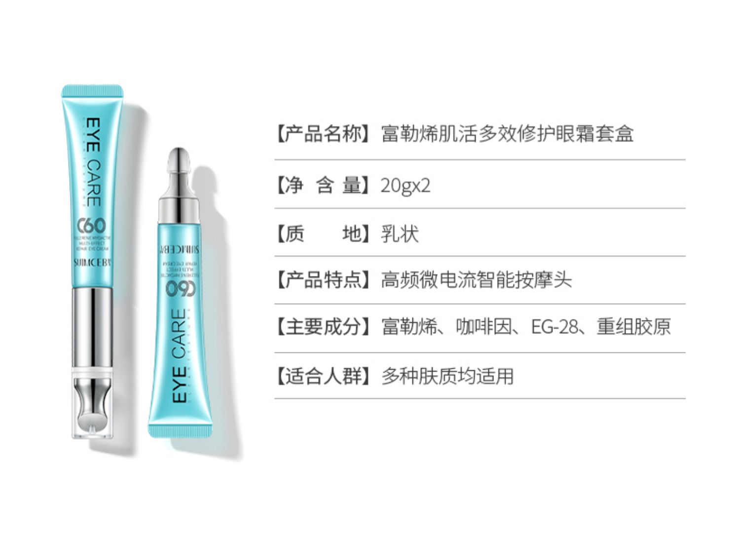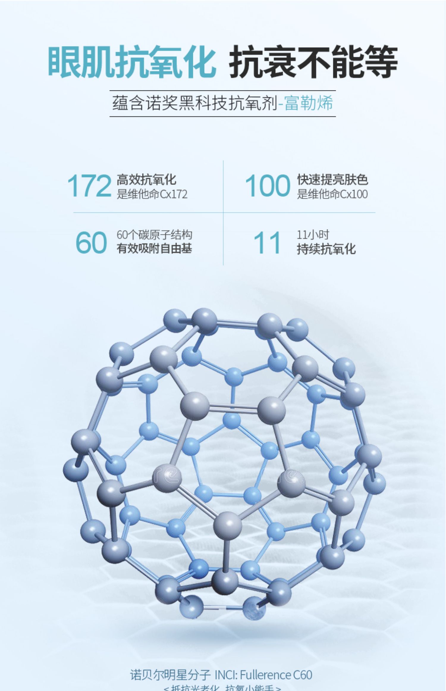 采用第五代微电流智能按摩头,蕴含诺贝尔奖(富勒烯)黑科技抗氧成分,眼霜滋润细腻,五大无添加,每分钟转速12000转,分分钟帮你清除黑眼圈,深层渗透肌底,淡化细纹,眼霜吸收是关键~【赠运费险】