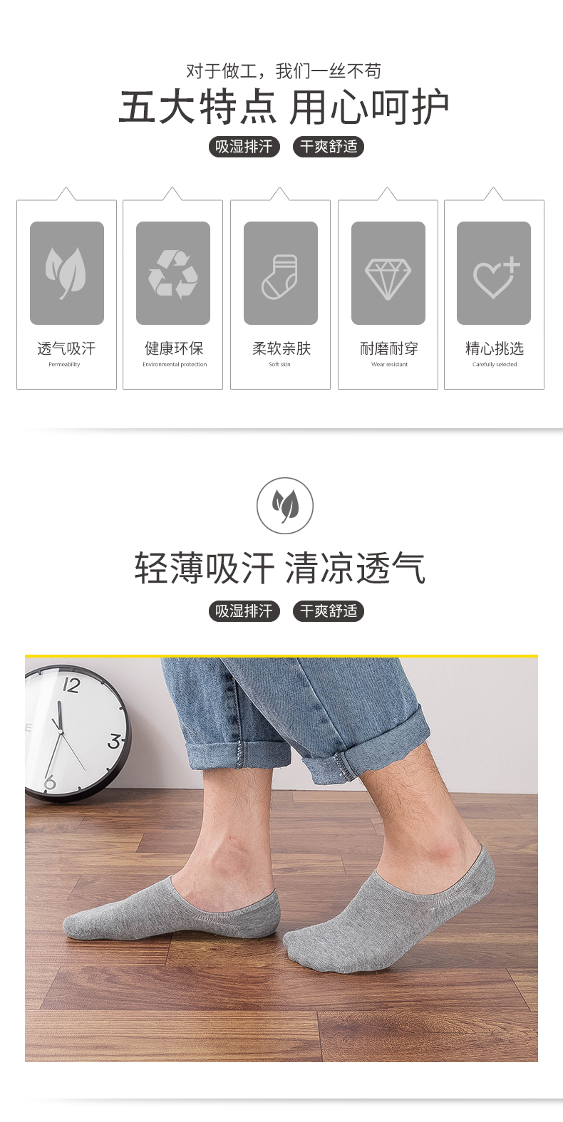 【5双超值装】精选新疆长绒棉,健康透气不臭脚,采用活性印染,不易褪色,柔软舒适,硅胶防掉脚,耐磨不起球,久穿无痕,百搭大方,精心呈现,用心为你!