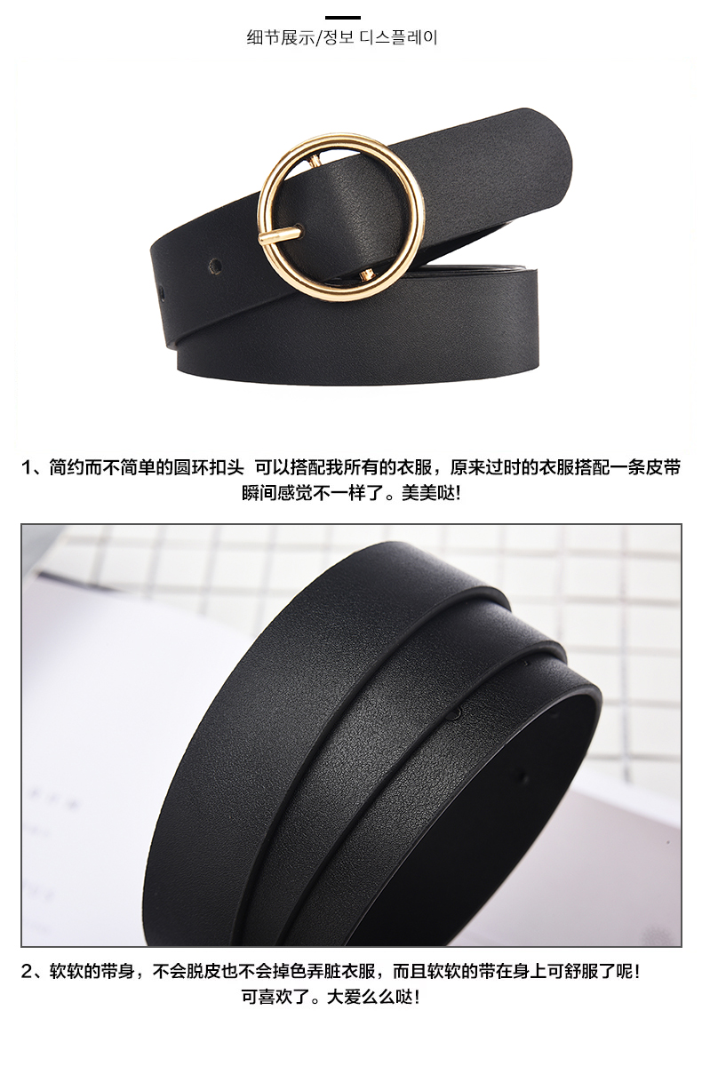 一年四季,腰带都是不可缺少的!从裤装到裙装,腰带都是搭配神器!这一款圆扣的皮带,无需打孔!精选优质磨砂实心扣,结实耐用!简洁平滑扣,质保一年,断了换新!