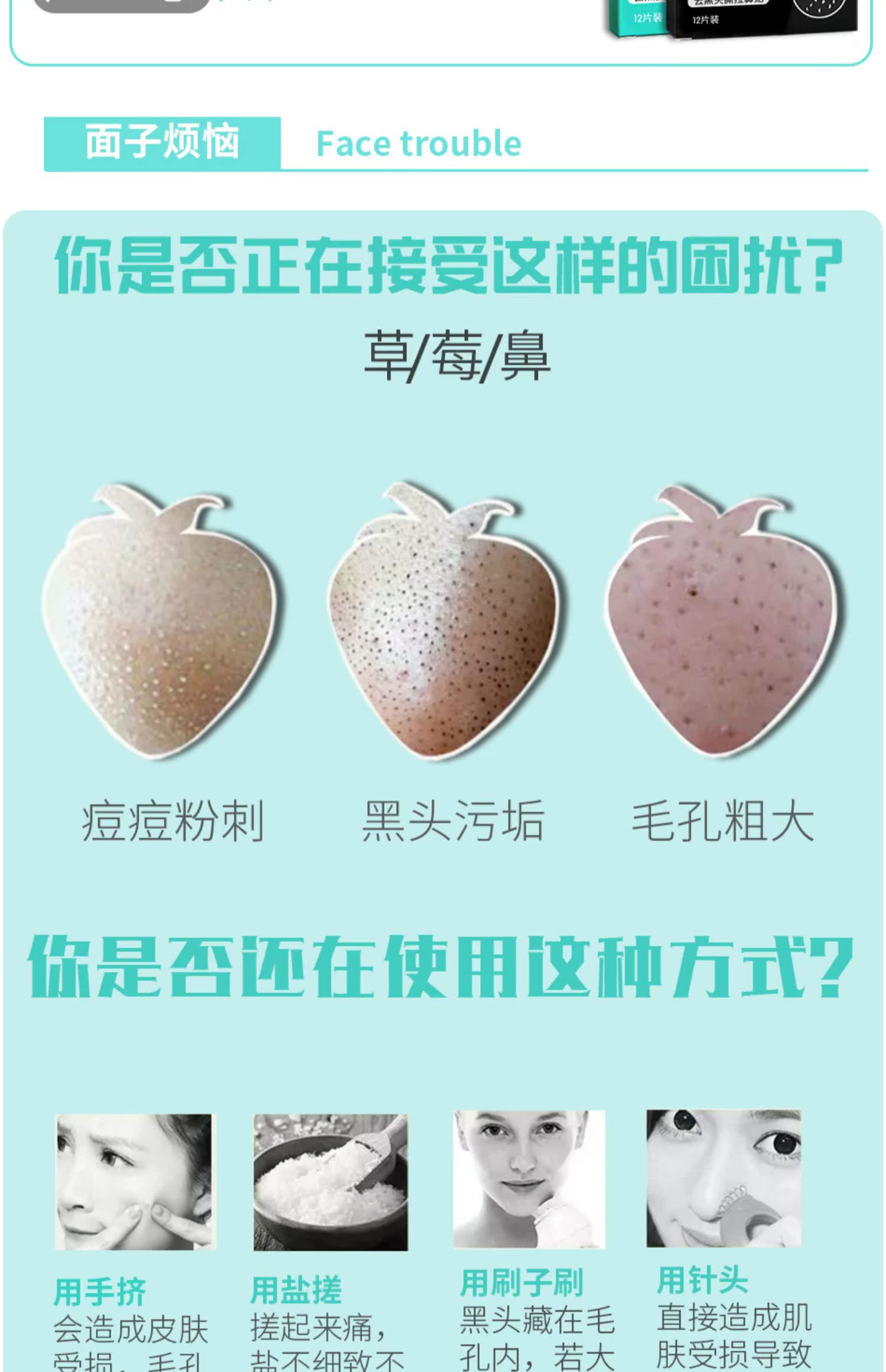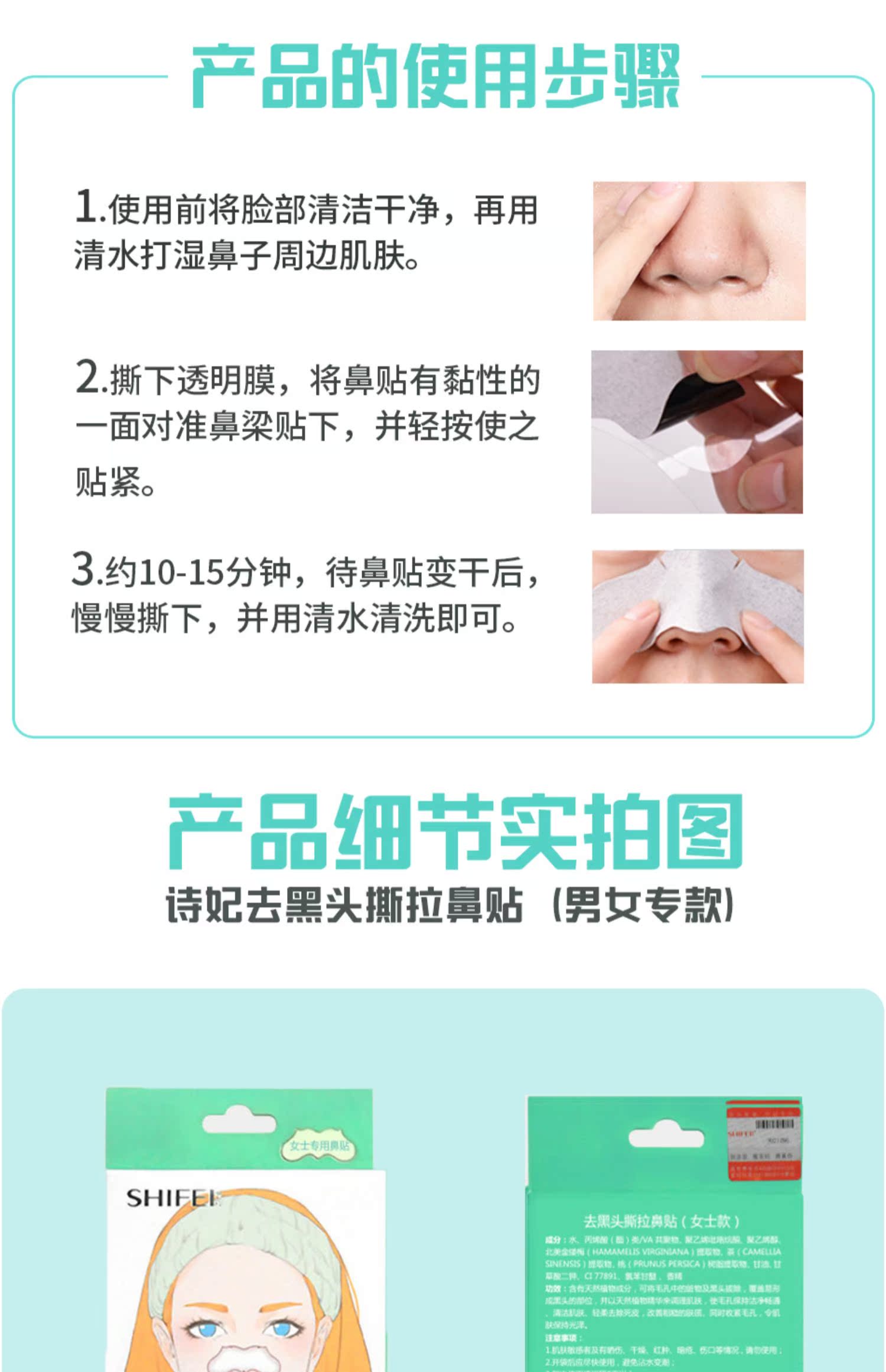 跟草莓鼻说再见,能够深度吸出顽固黑头收缩毛孔,改善鼻头粗糙肌肤,摆脱黑头白头困扰,温和不刺激,独立包装方便携带。