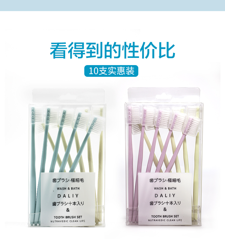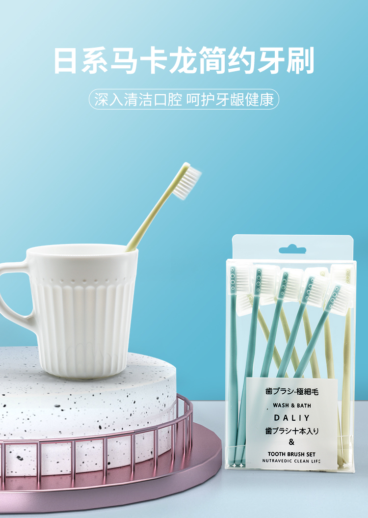 【日本进口牙刷10支装】日系马卡龙牙刷软毛超细成人家庭备用带盖抑菌极细毛牙刷,绿色健康,环保卫生,刷毛选用竹炭超细软毛防潮、抗菌,有助于保持刷毛的干爽,快快抢购!【赠运费险】