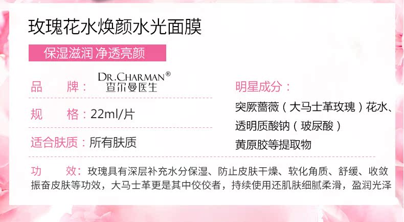 唤醒甜蜜美肤,提亮肤色?舒缓镇静肌肤,以花养肌,温和深润,花蜜营养,天丝膜布,承载更多补水能量,清爽透气?