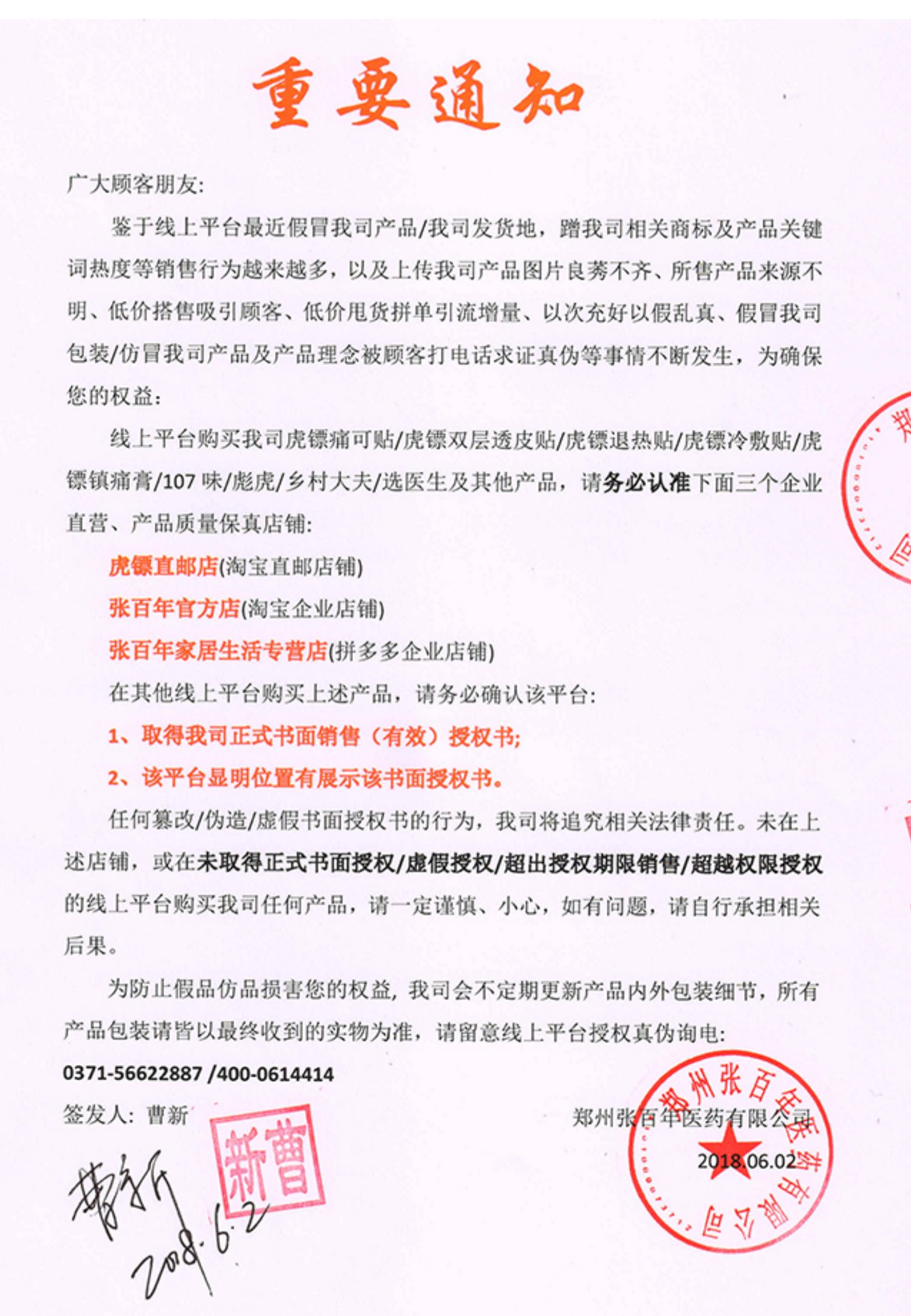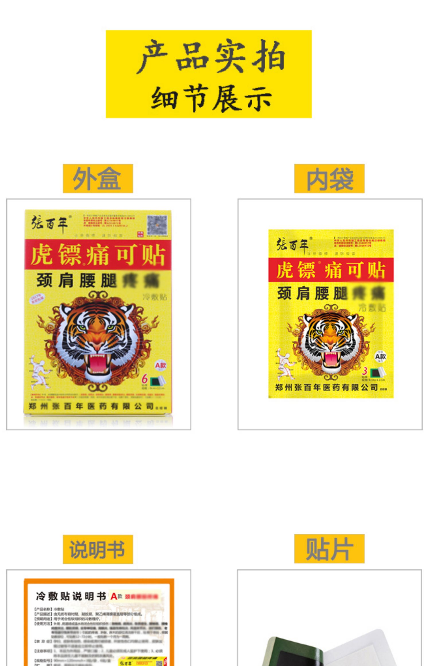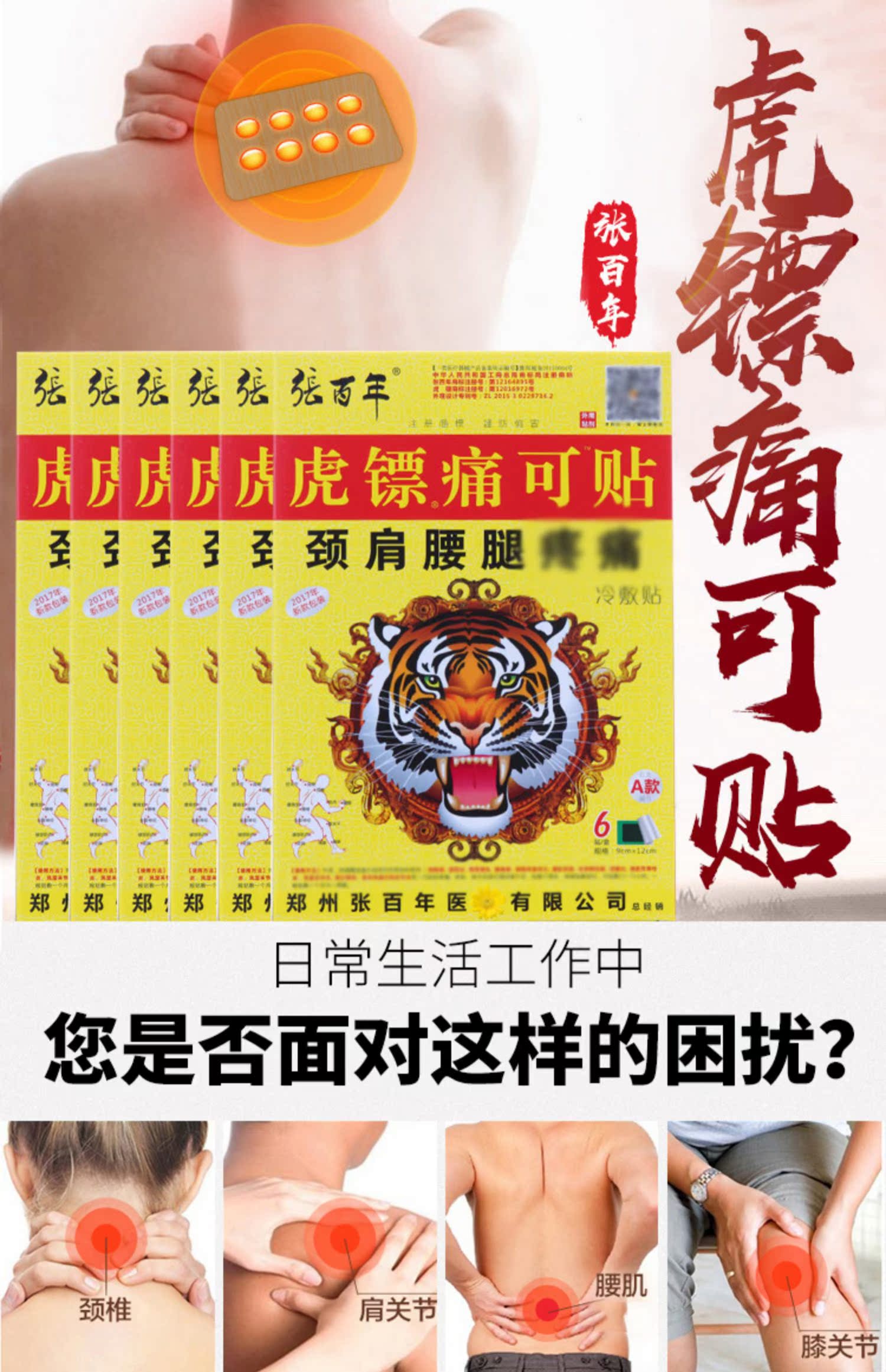 【正宗张百年虎镖品牌】一贴虎镖=两贴制造=绿膏+黑膏,贴敷面积倍增,缓解疼痛翻番。一盒6贴,还送赠品,官方直邮正品,线上线下同步销售。厂家直邮,品质保真!值得信任,活动价,更优惠!!!