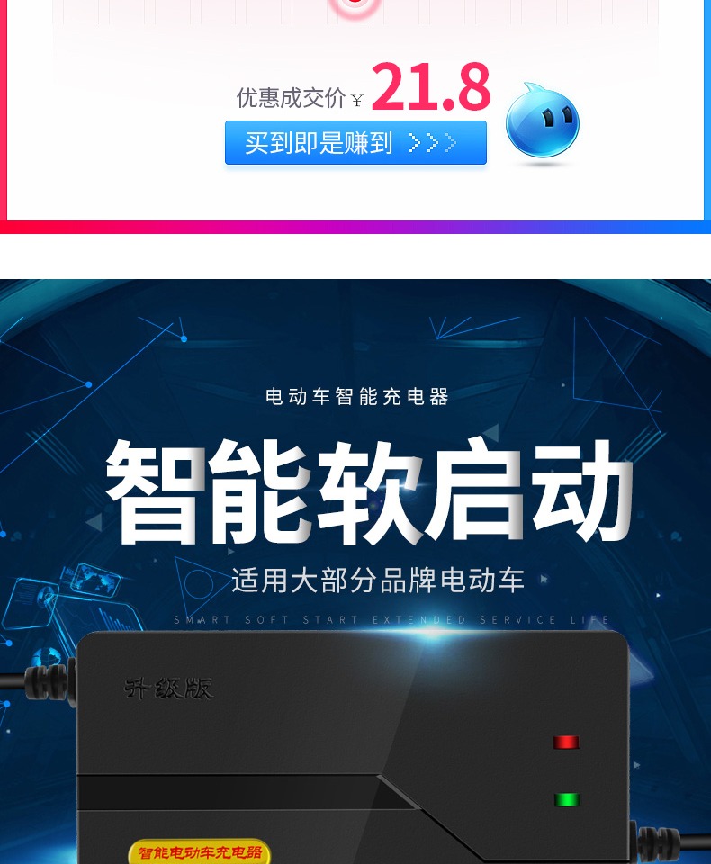 【明星于荣光代言】智能芯片,自动断电,安全静音,防反接,兼容市面百分之99.9的各品牌电动车,赶紧屯一个吧【赠运费险】