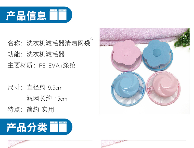 手感舒适,方便轻巧,优质涤纶线,缝制超细密,结实耐用,轻松去除杂物!半自动、全自动洗衣机均适用