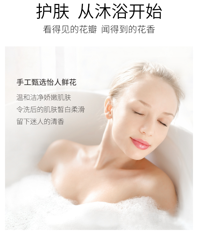 蕴含丰富的植物精华,为肌肤与花瓣制造一场浪漫的邂逅,除去一身疲惫,让肌肤更水嫩弹性,香气迷人。撩汉神器,女神必备!