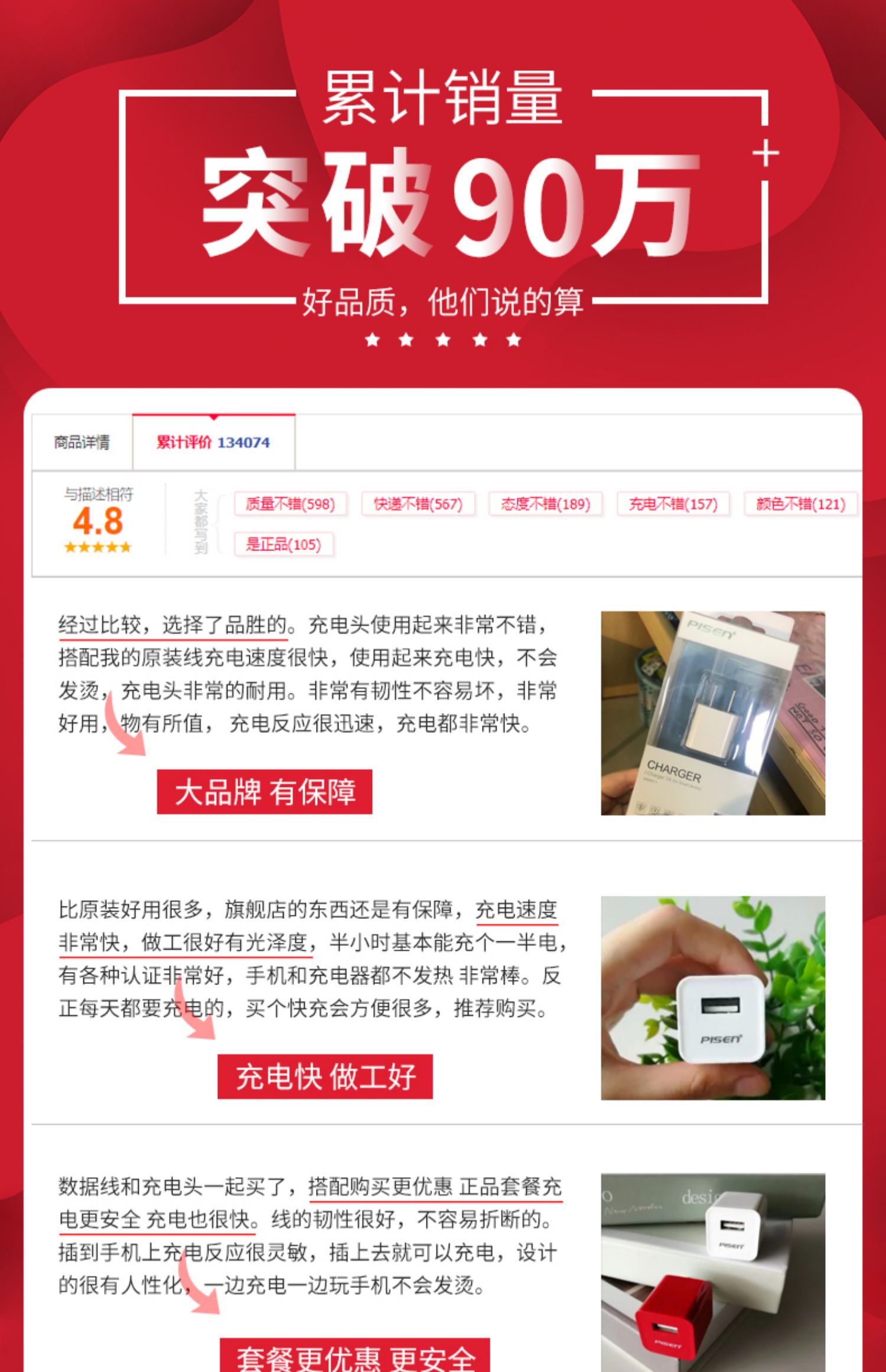 累计13W+好评!销量突破90万!官方正品充电器,小巧便携,3C认证,安全快充,智能兼容,不发烫更好的保护你的手机!【赠运费险】