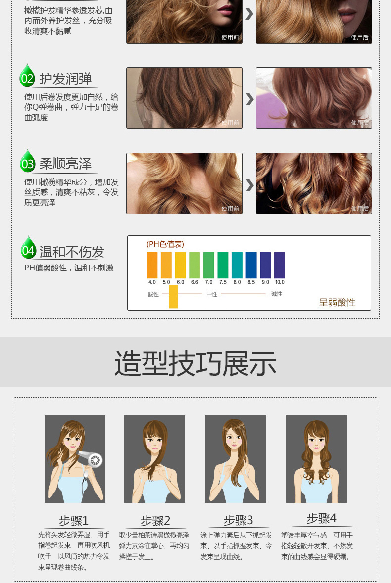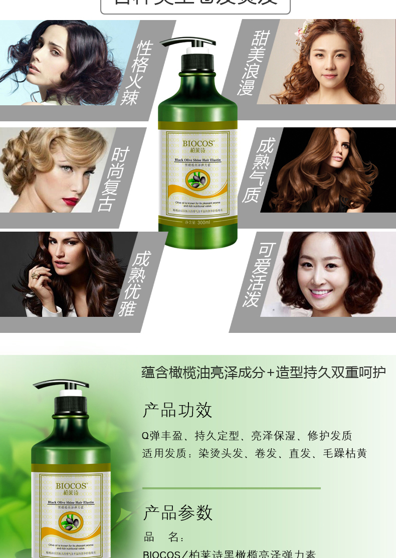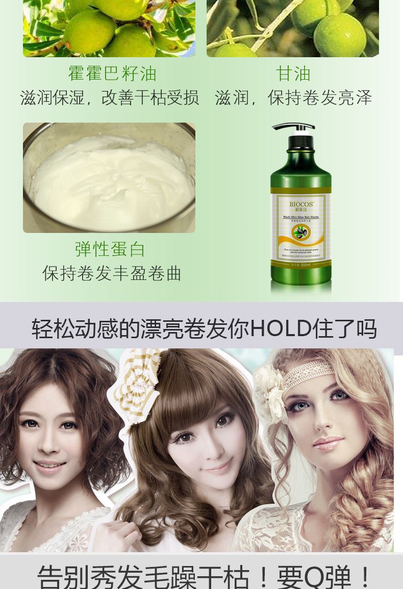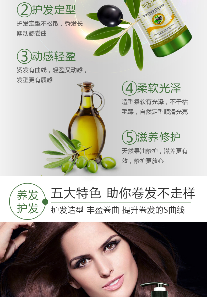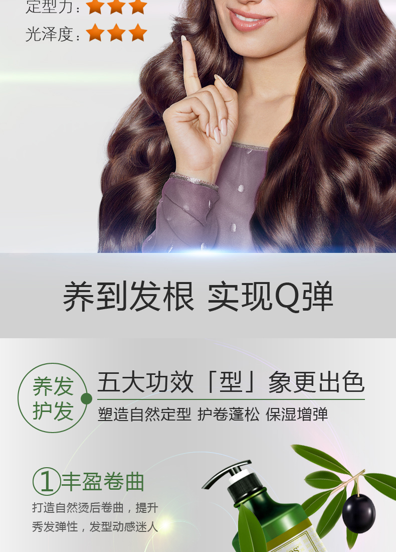 【柏莱诗】烫发卷发适用,持保湿定型,亮泽光彩,不油腻不僵硬,滋养修复干枯毛躁的头发,橄榄呵护,补充肌肤毛发营养护发良品,令秀发柔软亮泽!