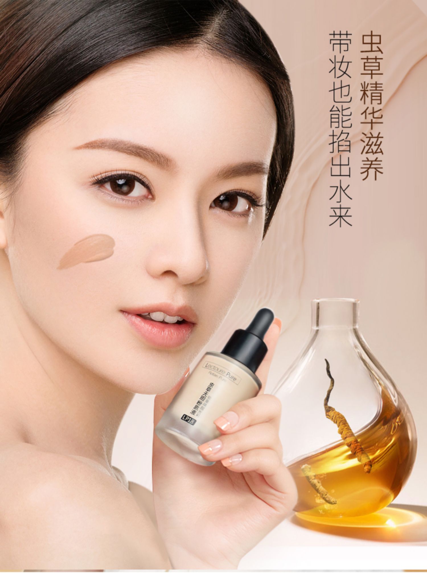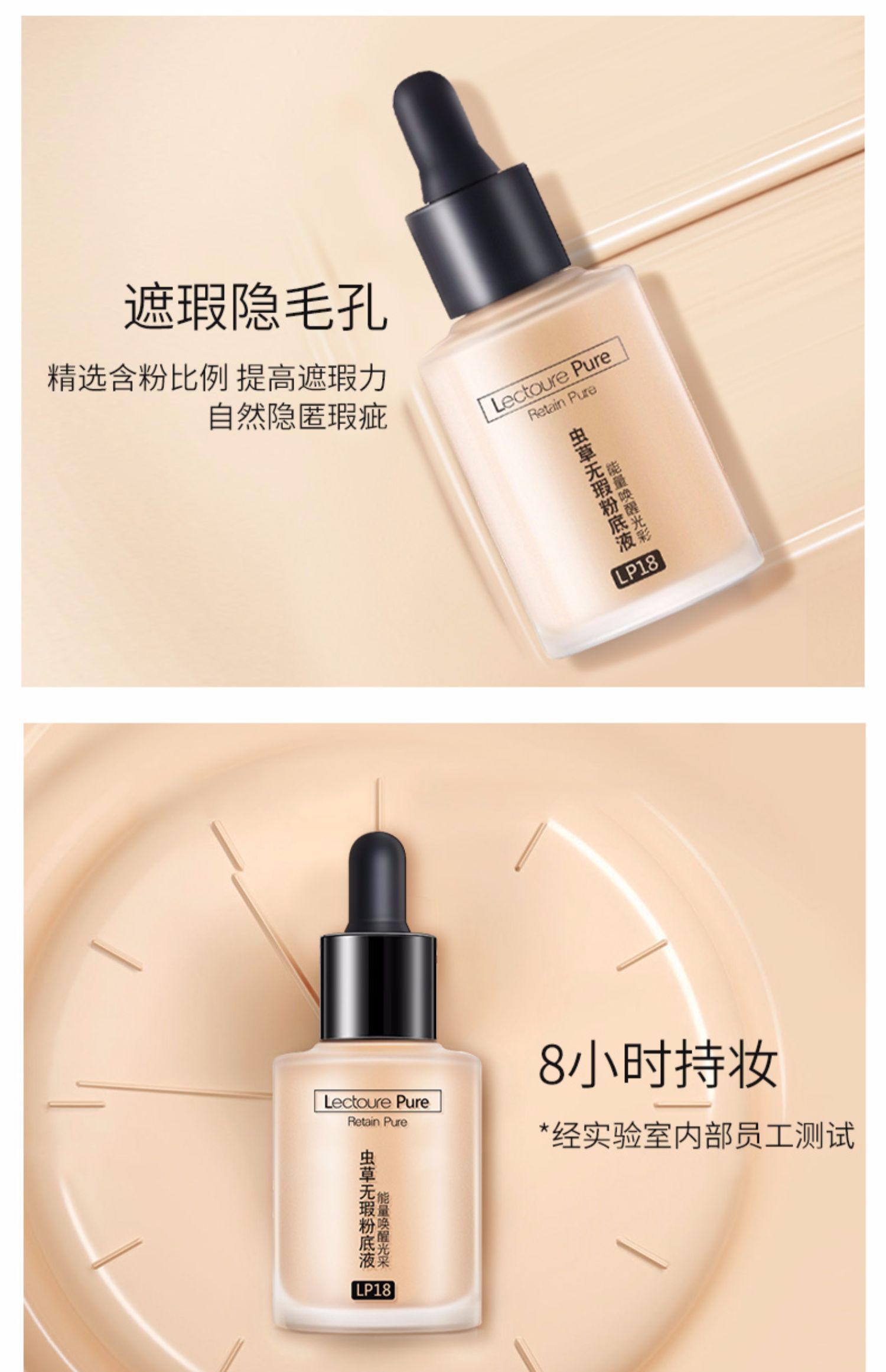 【买一送一!还送美妆蛋!】虫草能量,干皮救星!专柜爆款,小黑帽轻奢光润无暇粉底液,奢养润泽,遮瑕提亮,符合多种肤质,强大保湿嫩白效果,水润透亮给你“奶油肌”,只需一分钟