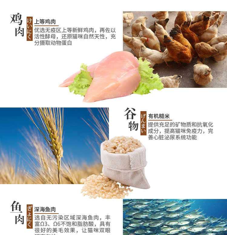 配方,取材天然原料,适口性好,营养丰富,猫咪更爱吃,告别挑食。