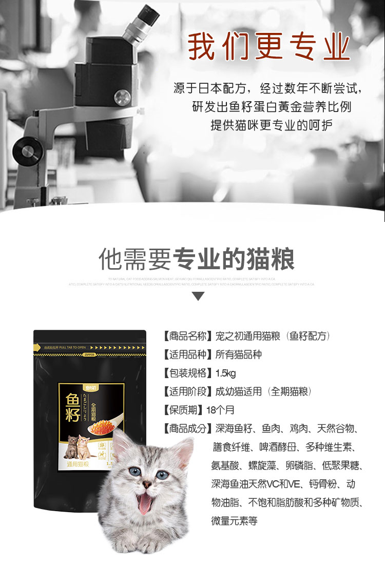 【宠之初】鱼籽猫粮通用成猫幼猫天然粮3斤