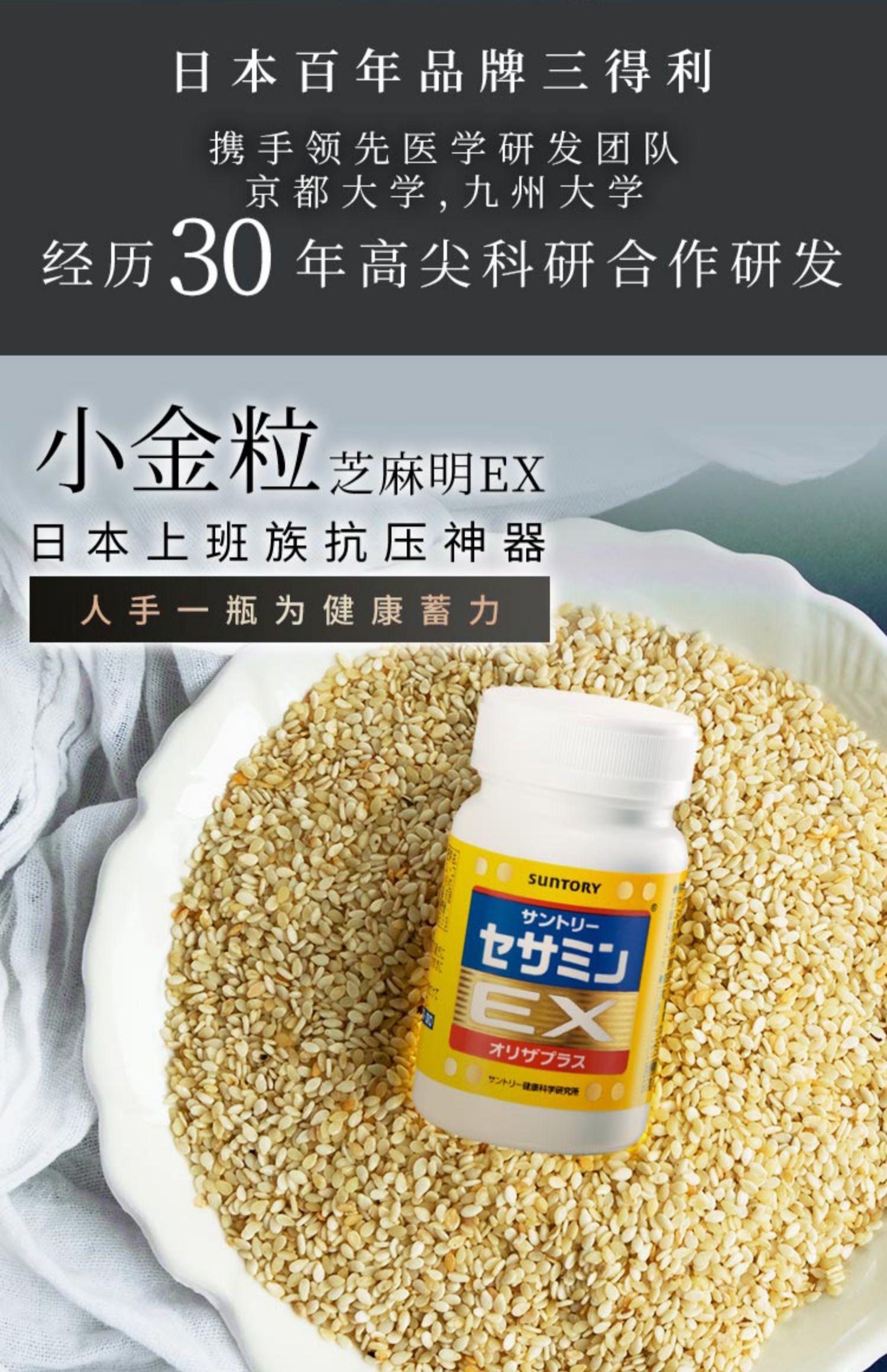 【海外旗舰店】日本三得利SUNTORY芝麻精华EX胶囊90粒,四效合一维持青春活力,改善容颜提升精力,青春活力,神清气爽,改善睡眠,身体轻盈,消除疲劳,肌肤光泽,不易宿醉。