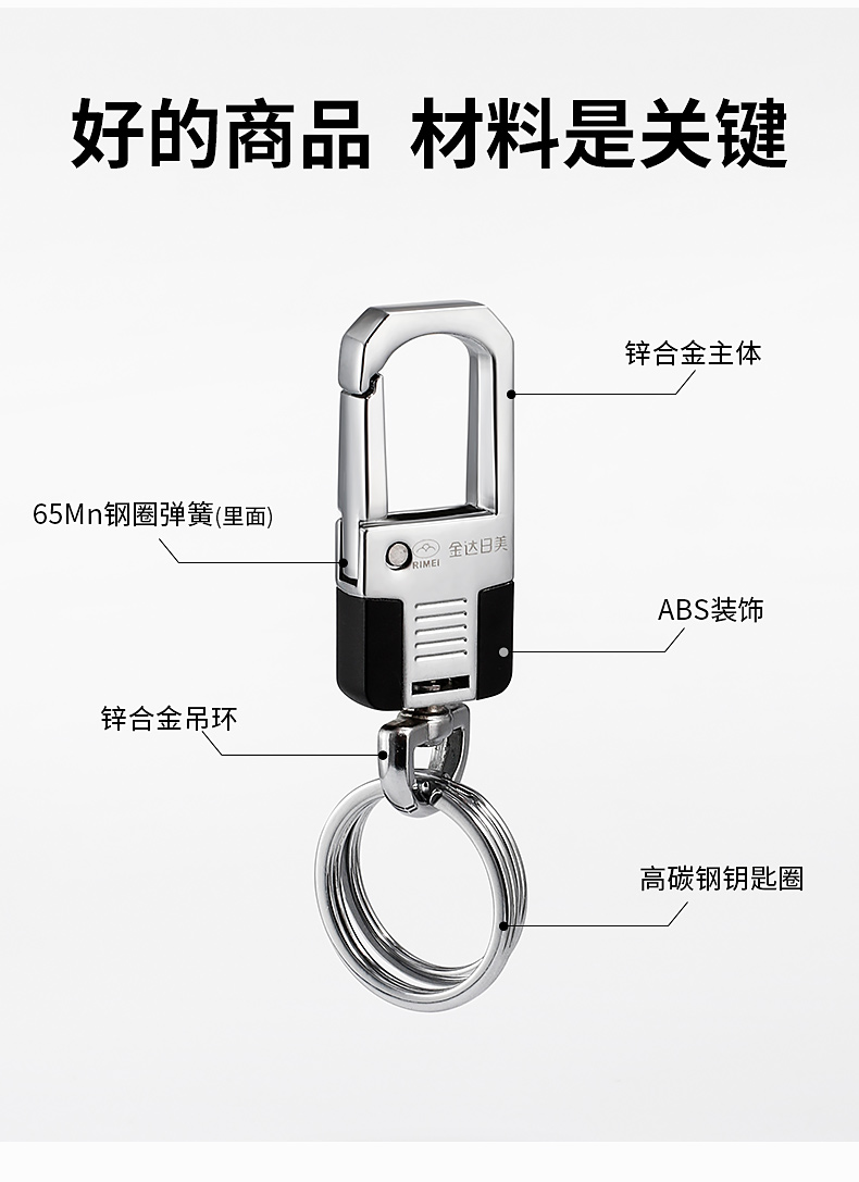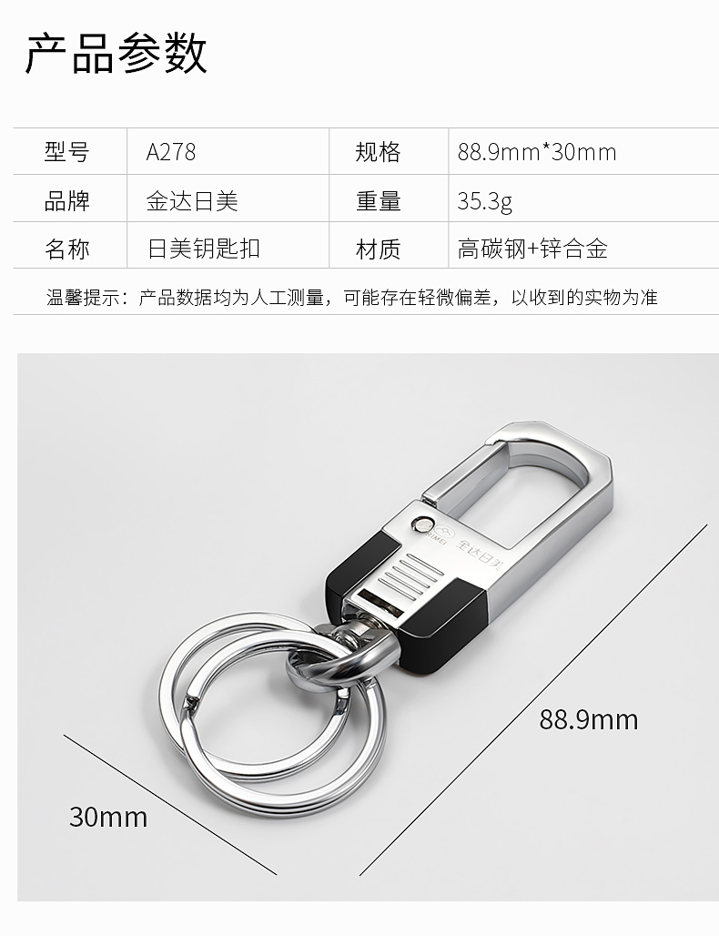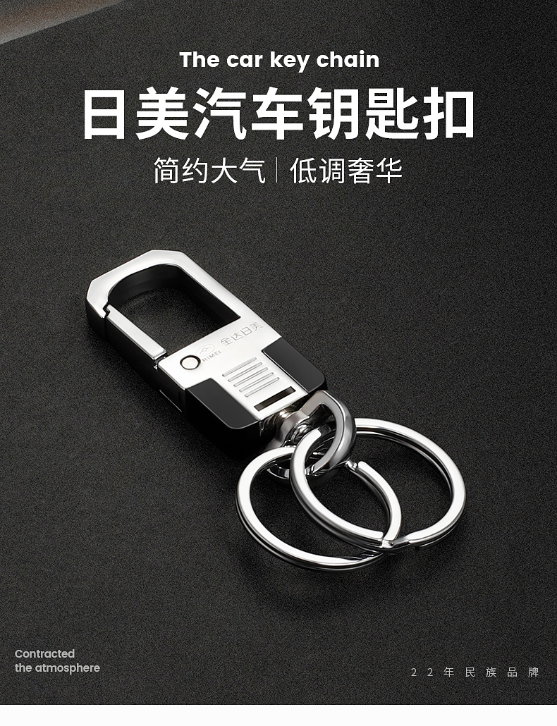 【国民品牌】金达日美汽车钥匙扣,铝合金材质,电镀工艺,双钥匙圈设计,低调简约好品质。