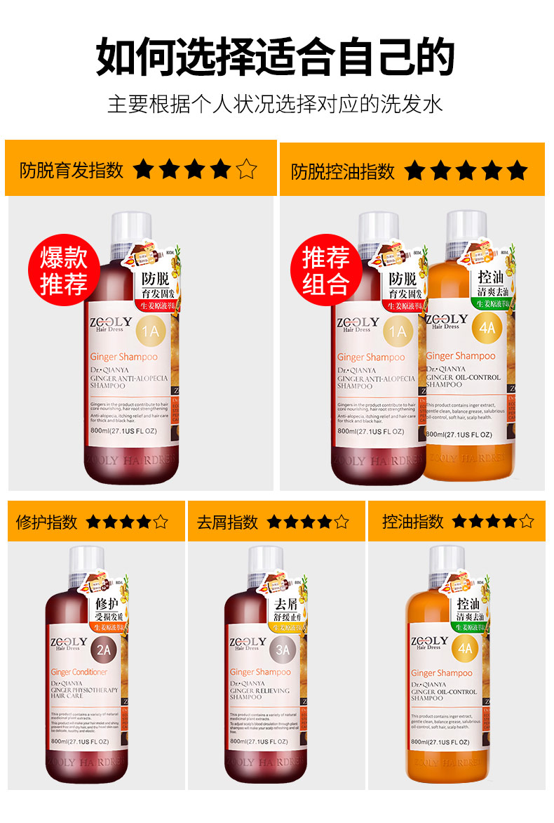 卓蓝雅防脱发生姜洗发水,护发素套装,男女控油去屑姜汁,网红款洗发露,