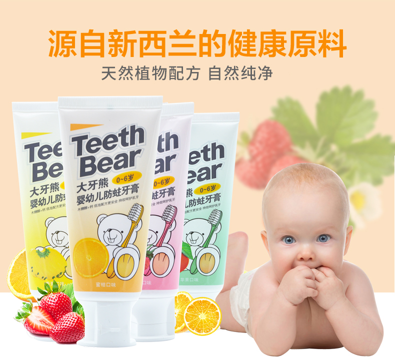 顺丰包邮,新西兰进口儿童牙膏,可吞咽的牙膏,有效预防蛀牙,富含钙质巩固宝宝尚未发育的乳牙,清新水果味让宝宝从此爱上刷牙【赠运费险】