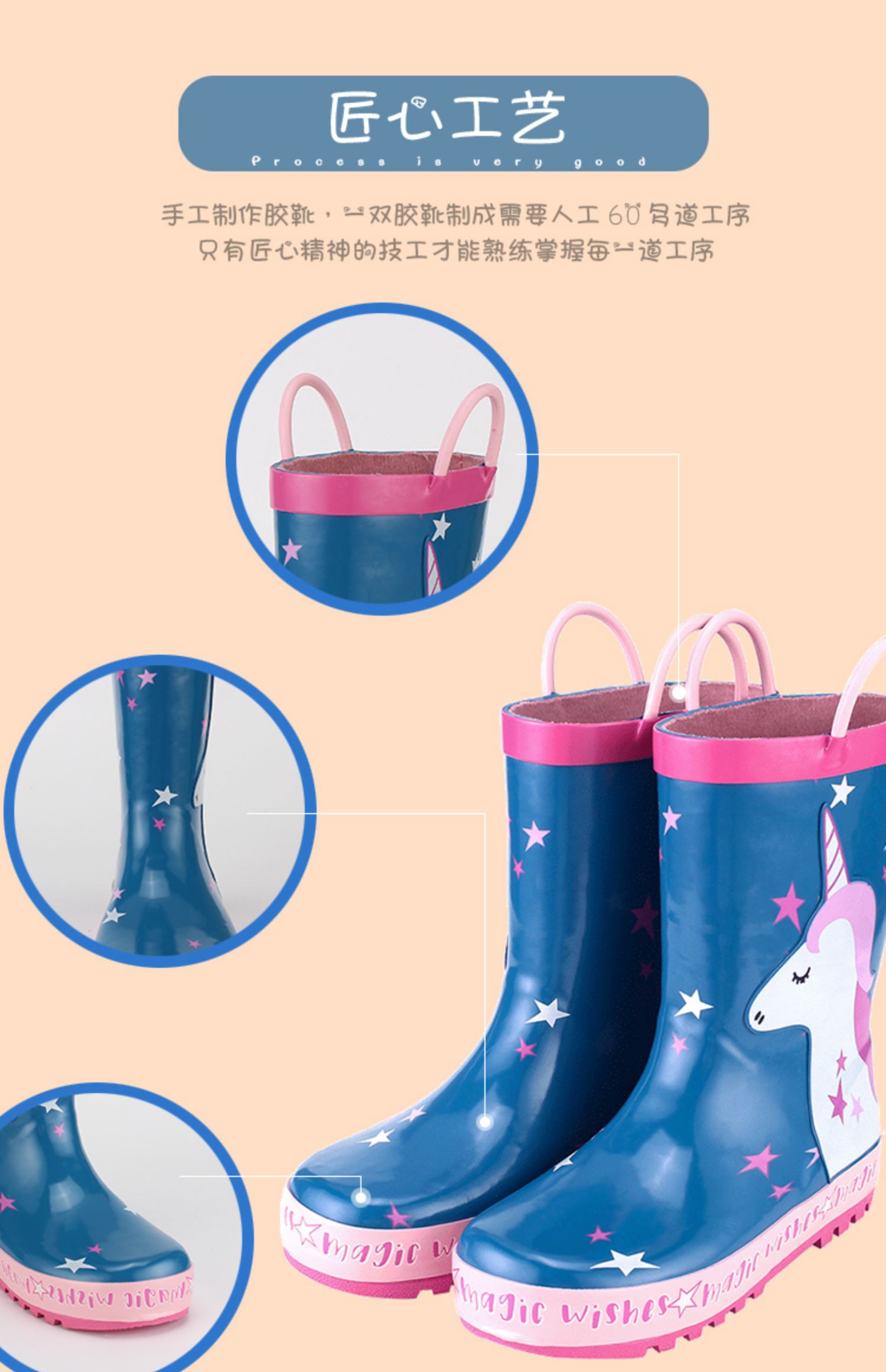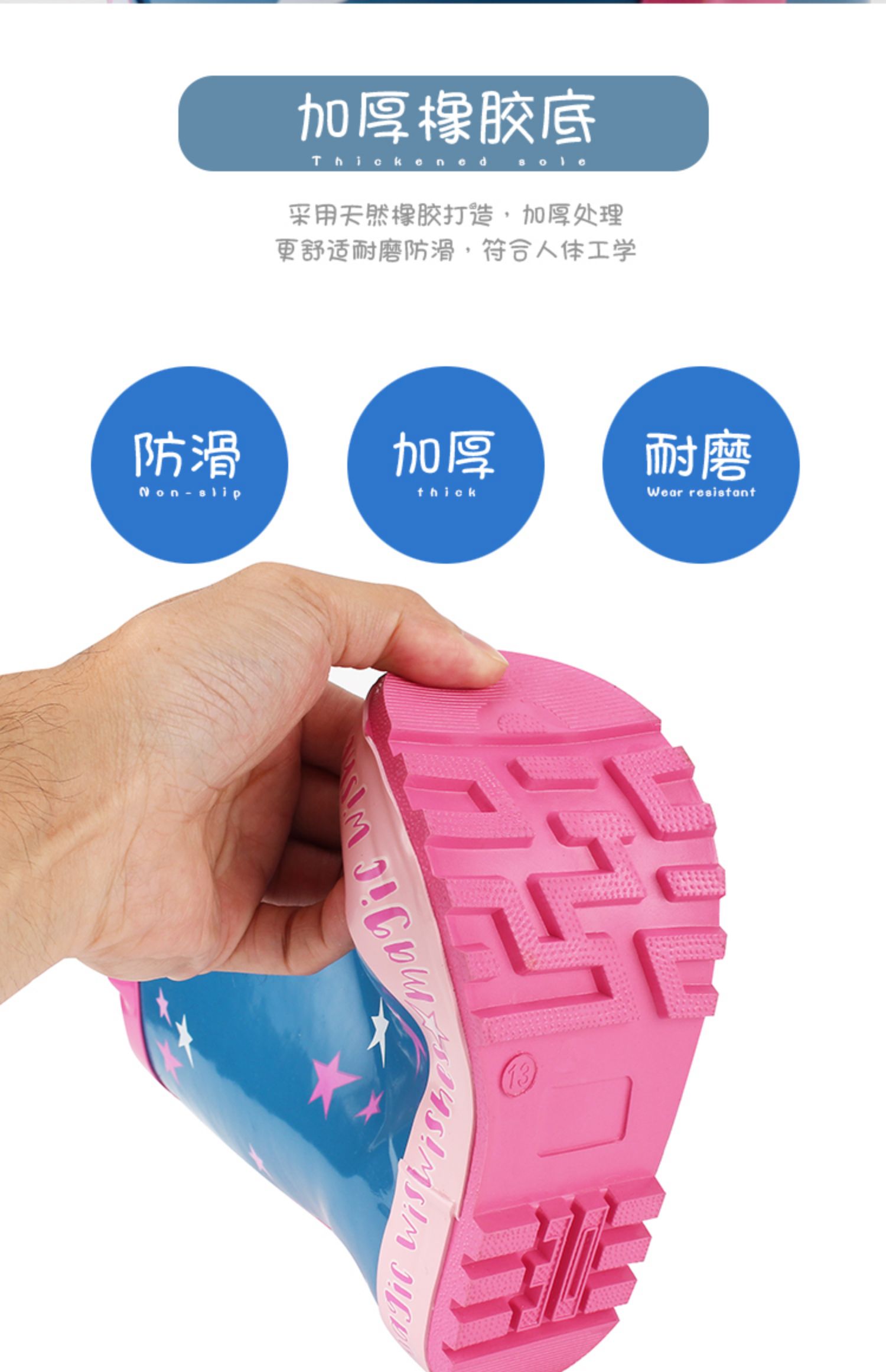 舒适防水,耐磨防滑鞋底,双提手鞋帮。轻巧不累脚,夜间警示条设计,让宝宝雨天出行更安全【赠运费险】