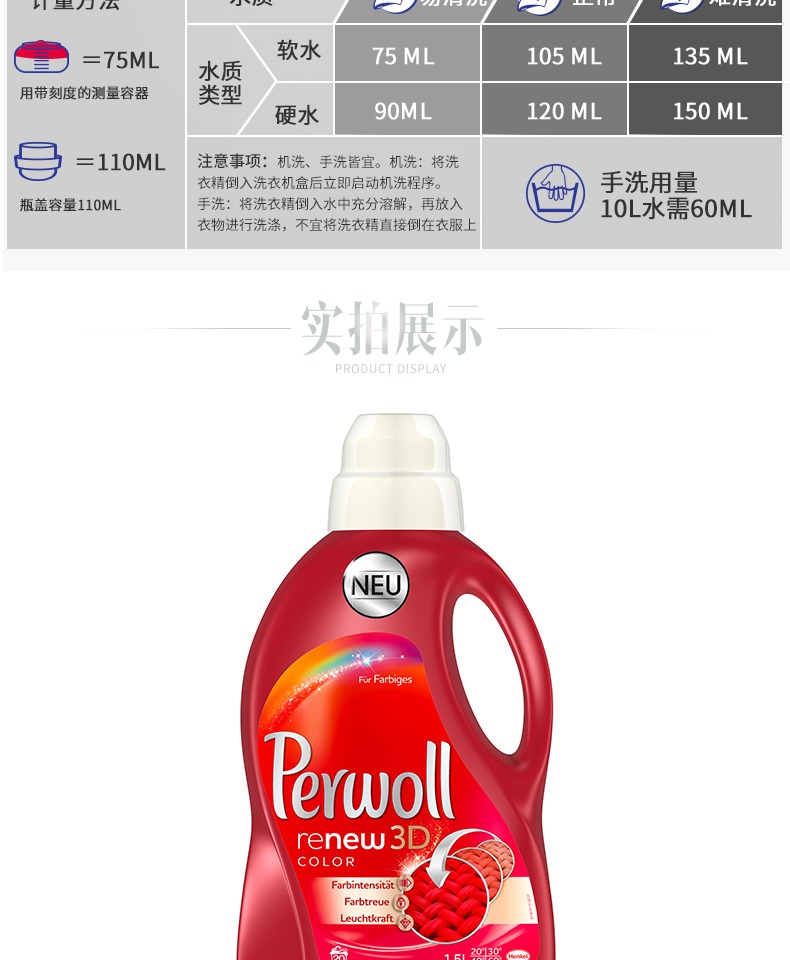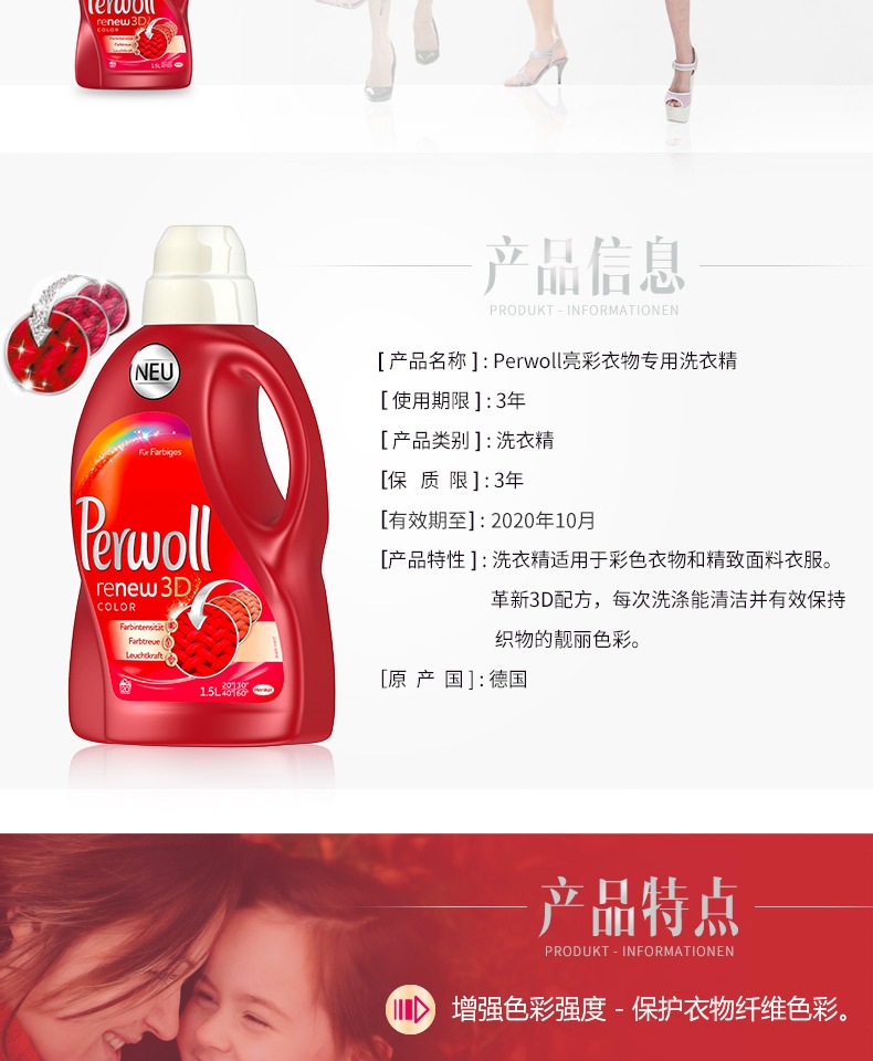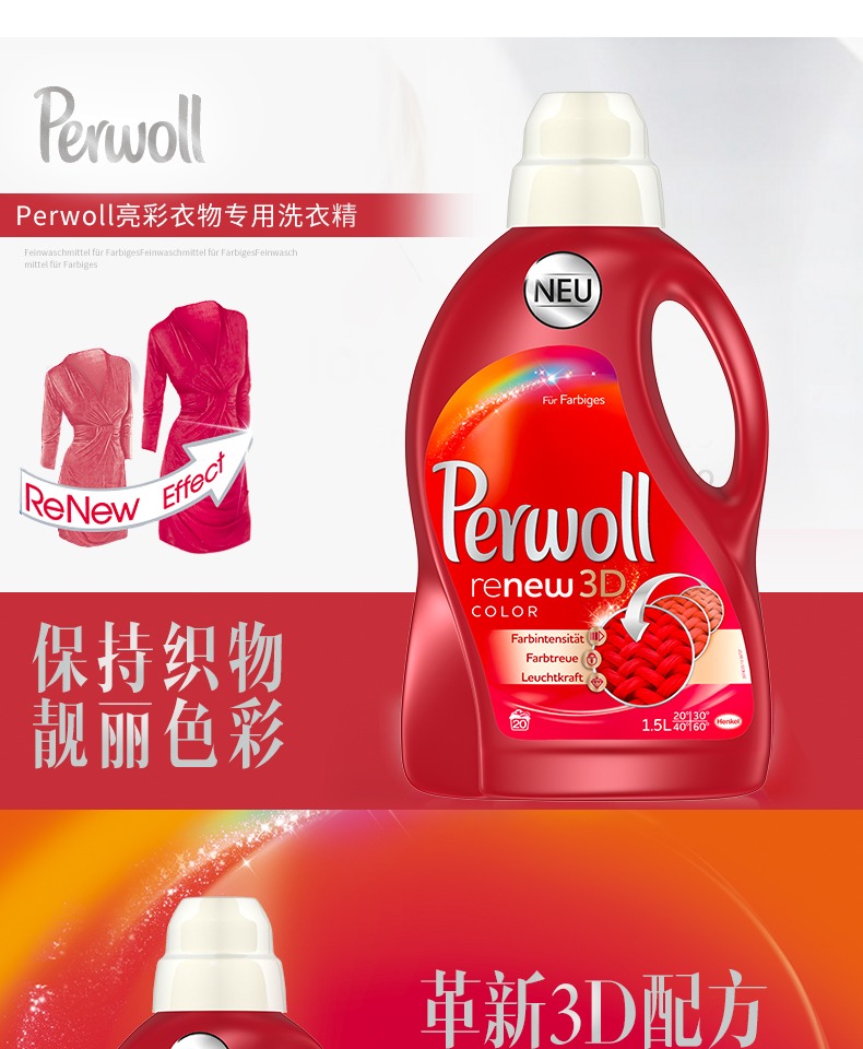 Perwoll进口亮彩衣物洗衣精,抗菌不伤手,鲜艳护衣洗衣液,高浓缩,超实惠,抑菌防霉,深层去污。【赠运费险】