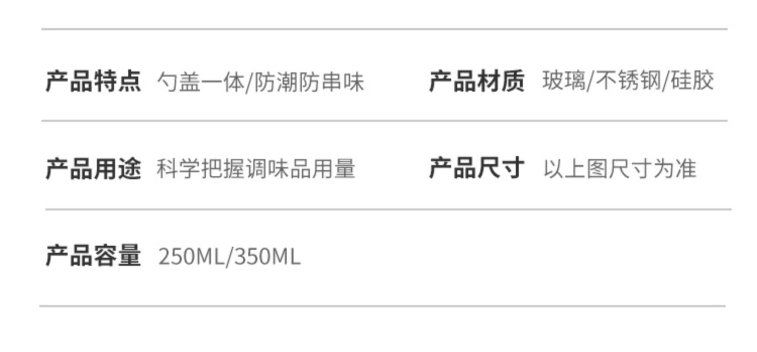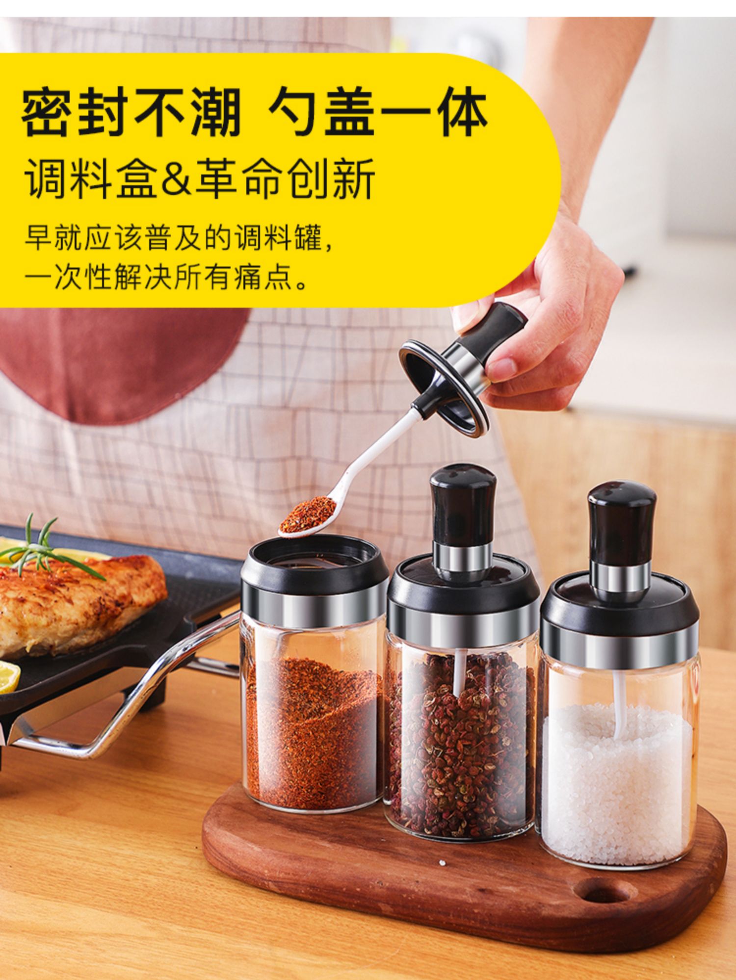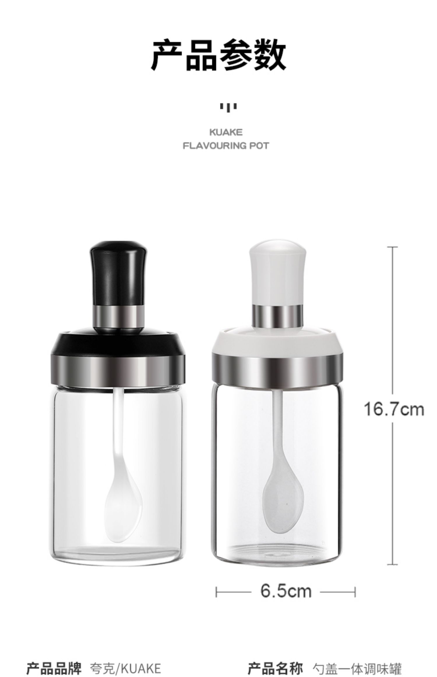 夸克旗舰店,厨房好帮手,耐高温玻璃调味罐,无铅玻璃,勺盖一体,防潮防虫,高密封不漏调料,持久保鲜,品质匠造,西餐厅也爱用的质感调味罐